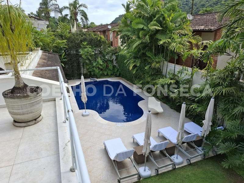 Excelente casa em condomínio na praia da Baleia a 400 metros da areia da praia na melhor localização, com 05 suítes, sala de TV, sala de jantar e estar, lavabo, cozinha voltada para espaço gourmet, varanda, piscina privativa, sauna privativa, jardins com ducha, 03 vagas de autos, dependência de empregados, serviço de praia e segurança.