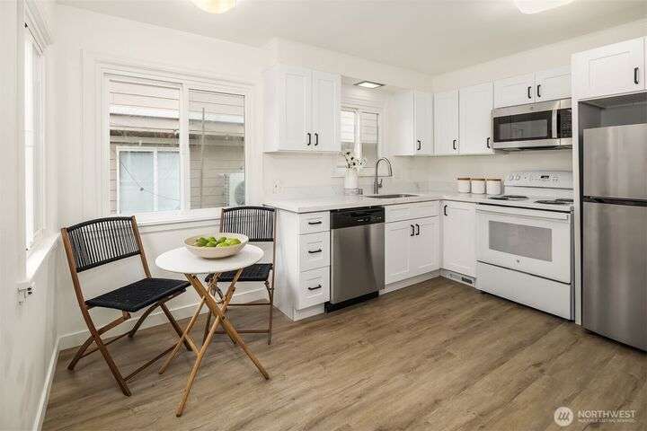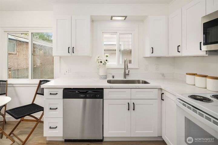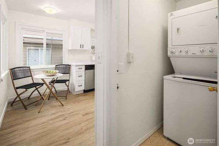 Well-maintained & updated duplex in loyal heights neighborhood. A perfect opportunity to live in upper unit & generate rental income from lower, or rent both for strong income potential. Newly remodeled upper unit has 2b/1b w/new kitchen featuring white cabinets, quartz countertops & new appliances. New bathroom w/new vanity, modern fixtures & new tub. New LVP flooring & fresh interior paint, hardwood flooring, wood-burning fireplace, in-unit W/D, gas forced air heating & double pane windows. Lower-level unit offers 1b/1b w/private entrance, full kitchen, in-unit W/D & new carpet. Enjoy fully fenced front yard & one assigned carport parking off alley. Unbeatable location, steps from transit, shops, dining, & all that Ballard has to offer.