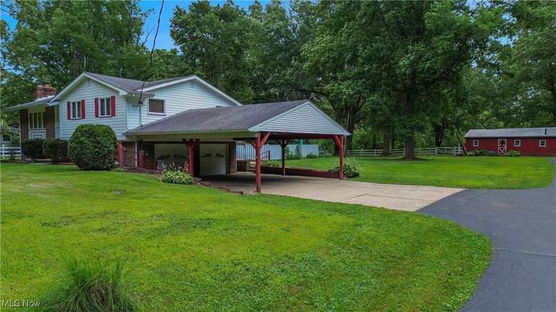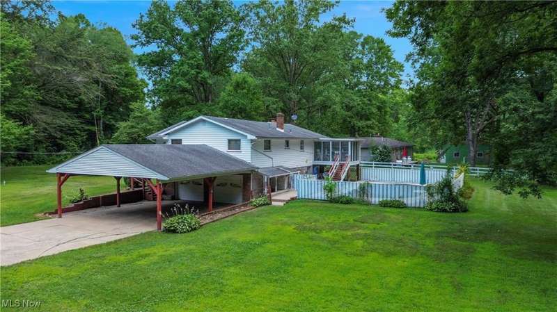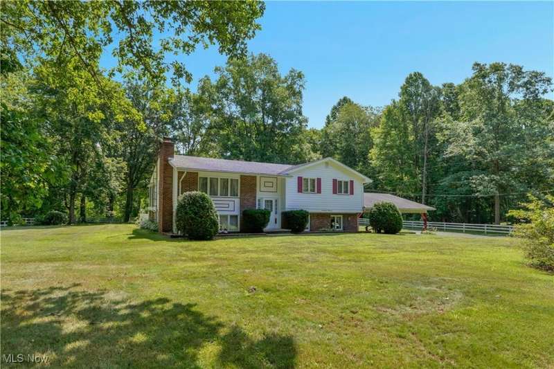 For over 50 years, this special 3 bedroom, 2.5 bath bi-level home has been the heart of countless memories, laughter, and love. Now, for the first time in decades, it's ready to welcome a new chapter. Tucked away on nearly 4 peaceful acres, this property offers a rare combination of space, privacy, and potential. This beautiful landscape offers a pond, barn, and a 2 car attached garage with carport to create the perfect setting for country living, whether you're looking to garden, raise animals, or simply enjoy the quiet. Inside, you'll find a home that has been lovingly and meticulously maintained over the years. The main level features a light filled living room with cathedral ceilings, an eat-in kitchen with a breakfast bar, and a 3-season sun porch that opens to the pool area. The primary suite includes its own full bath. Downstairs, the cozy lower level offers a second living area, laundry room, half bath, and walkout access to the in ground, fenced in pool, once the centerpiece of family gatherings and summer fun. If you're looking for a property with soul, space, and endless opportunity, you won't want to miss this one of a kind homestead.
