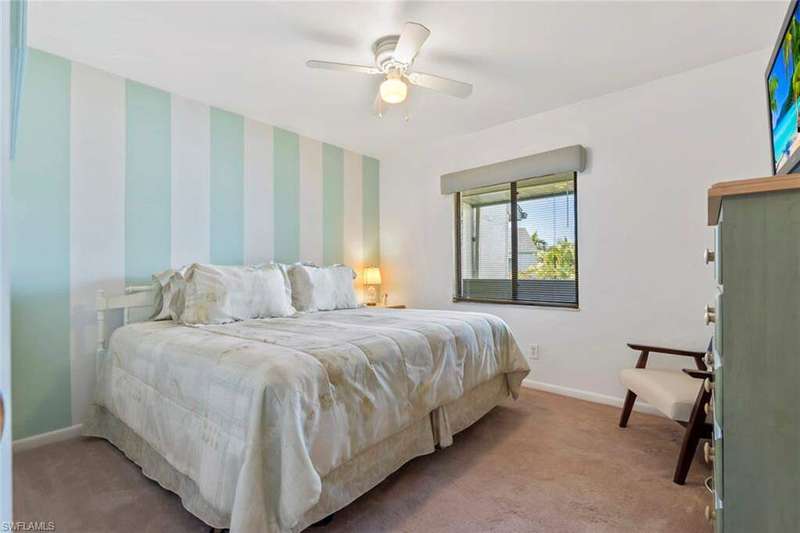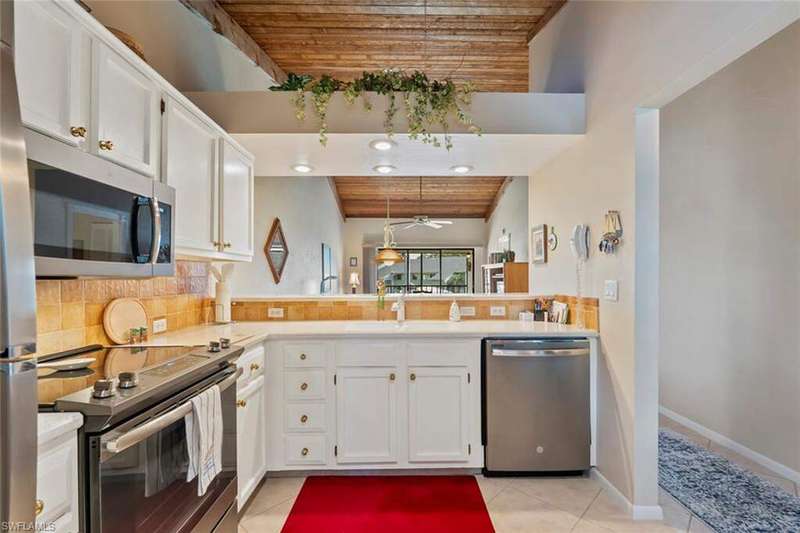 This gorgeous 2nd floor condo features sliding glass doors onto a lanai with a lovely view of the pool and the lake, has a spacious kitchen with stainless appliances, an open concept living space and vaulted ceilings. This 2 bedroom 2 bath condo is bright, spacious, quiet and is in move in condition. Enjoy our Naples outdoor lifestyle while having a cocktail on the lanai or stroll out your front door to the pool. Owners enjoy carport parking and a beautiful boutique community with a well kept pool, a picturesque walking path along the lake with lots of green space, miles of biking possibilities and tennis courts! Also a short drive to local amenities, and to Downtown Naples, with sugar white sandy beaches, wonderful dining and shopping both on 3rd Street and 5th Avenue South. Kings Lake is also a short distance from Naples Botanical Gardens, Naples Zoo, US Open Pickleball Courts, Bayview Park, Celebration Park and many other wonderful offerings throughout Naples.
