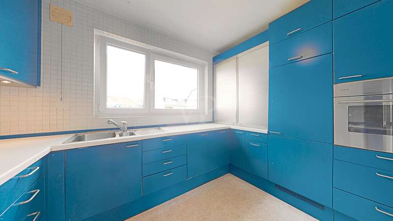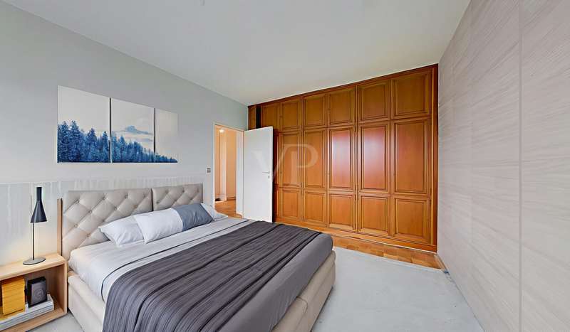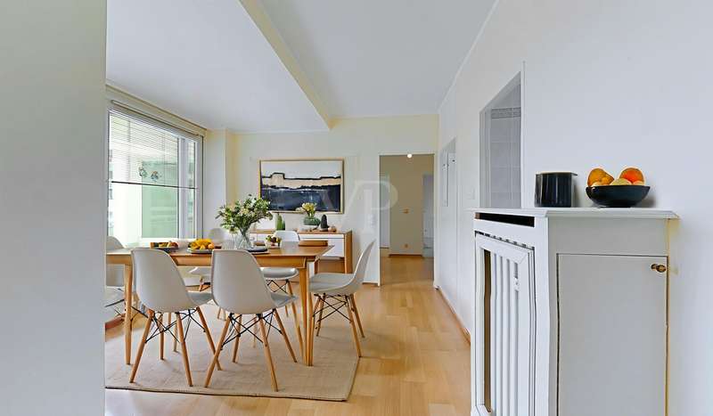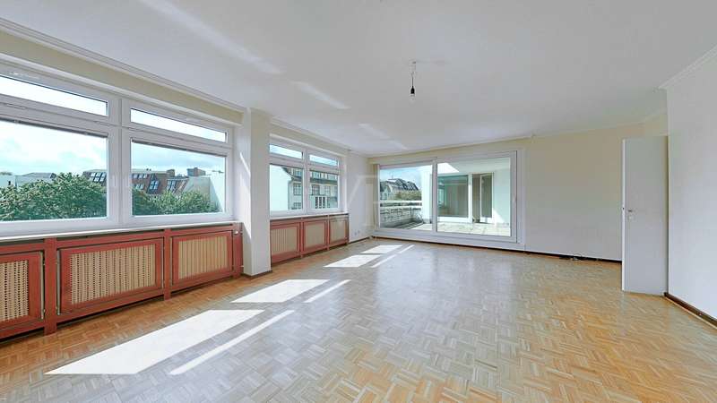 Spacious top-floor living with sunny south-facing terrace This charming top-floor apartment (5th floor) can be easily reached by elevator. It is located in a well-kept apartment building from 1969 and, with approx. 130 m² of living space, offers a spacious and comfortable home in the immediate vicinity of Kurfürstendamm. The apartment impresses with its central location and at the same time with its remarkable tranquillity! It has three rooms and impresses with its well thought-out room layout. The centerpiece is the open-plan living and dining area with access to the south-facing sun terrace - ideal for relaxing hours outdoors or social gatherings. Particularly noteworthy is the approx. 40 m² living room, which impresses with its brightness and far-reaching views. The quiet bedroom, facing north, offers pleasant coolness on warm days and serves as a perfect retreat. A separate, walk-in closet is directly adjacent. Another room can be used flexibly as a children's room, guest room or study - according to your needs. Two modern bathrooms provide additional comfort: one with a shower, the other with a bathtub - ideal for a quick start to the day or a relaxing bath in the evening. The kitchen is generously proportioned and offers plenty of space for your culinary ideas. A modern district heating system ensures even and energy-efficient heat distribution in all rooms. Undoubtedly the highlight: the spacious terrace. It offers numerous possibilities for individual design - whether for relaxing, gardening or for cozy evenings with friends. The location scores points for its excellent transport links and proximity to shopping facilities, schools and a wide range of leisure activities. The surrounding area offers a pleasant living atmosphere with an excellent infrastructure and short distances to all everyday amenities. Additional features include a private cellar room and practical communal areas such as a bicycle and drying room. There is also plenty of storage space within the apartment. It is possible to rent a parking space. The apartment was last modernized in 2020 and is in an attractive condition, but in need of renovation. Are you looking for a new home with plenty of space, two bathrooms and a sunny outdoor area in an absolute top location? Then come and see for yourself during a viewing on site. We look forward to your inquiry!