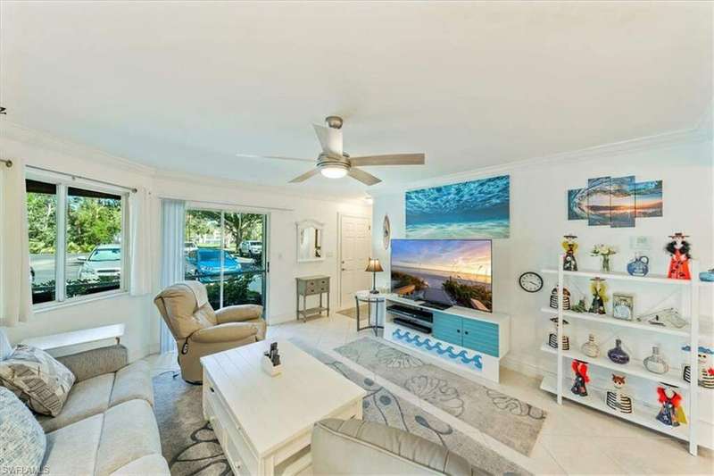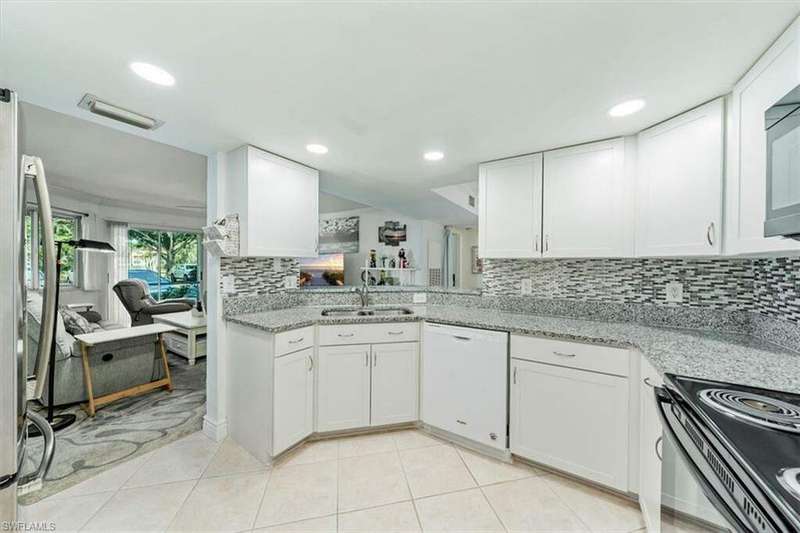 LOCATION, LOCATION! Close to FGCU, Coconut Point Mall, Miromar Outlets & Airport! This beautifully remodeled 2-bedroom, 2-bathroom END UNIT, located on the first floor, is sure to impress from the moment you arrive. The open-concept kitchen features a breakfast bar, granite countertops, and newer appliances. The spacious, flowing floor plan, with tile flooring throughout, is perfect for entertaining. Special touches include crown molding, remodeled walk-in showers with elegant tile walls and built-in benches (with handicap bars), new commodes, and granite vanities with sinks. The home also boasts new ceiling fans throughout, as well as newly replaced lanai screens. Storage is abundant with walk-in closets in both bedrooms, and a newer washer and dryer are included. Additionally, the electrical circuit breaker box was updated in 2021, and the water heater is approximately 4 years old. The A/C compressor is also about 3 years old. To enhance comfort, the seller has installed window and slider tinting to reduce sun glare. Relax and unwind on the spacious lanai with your favorite beverage. Fountain Lakes offers a wealth of amenities, including a 9-hole golf course, pickleball, tennis, a fitness center, a playground, a billiards room, a picnic area with grills, and a swimming pool. Plus, there's an additional pool at The Greens. What more could you ask for? Two pets are allowed with approval.