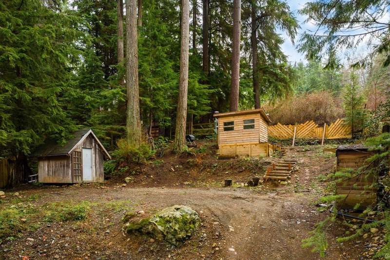 The flat & cleared build site on this 0.42 acre lot is hidden from the road and at the top of the property for the best views & the best light. To the northwest you have a view of Mt. Gardner. Trees have been cleared behind the property to the southwest allowing for good sunlight all year round. There are still plenty of trees to maintain privacy, or selectively removing some would provide for a better view. A roughed-in driveway is in place and hydro has been brought up to the build site. The sauna building and storage sheds are included. Site plan and development permit details available. Will need septic and water. This property is on the school and transit bus routes, and not far from Nectar Yoga, Bowen Cider House, and Alderwood Farms. Contact your realtor for an appointment to view.