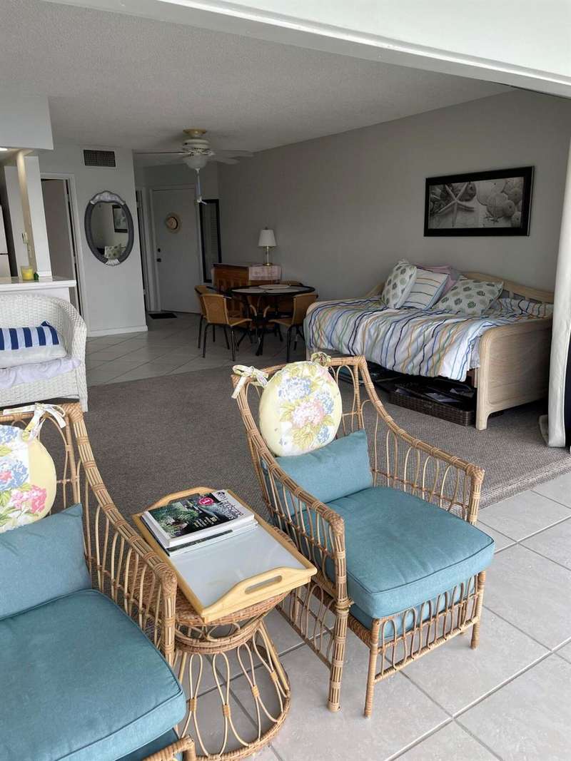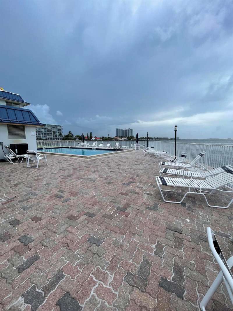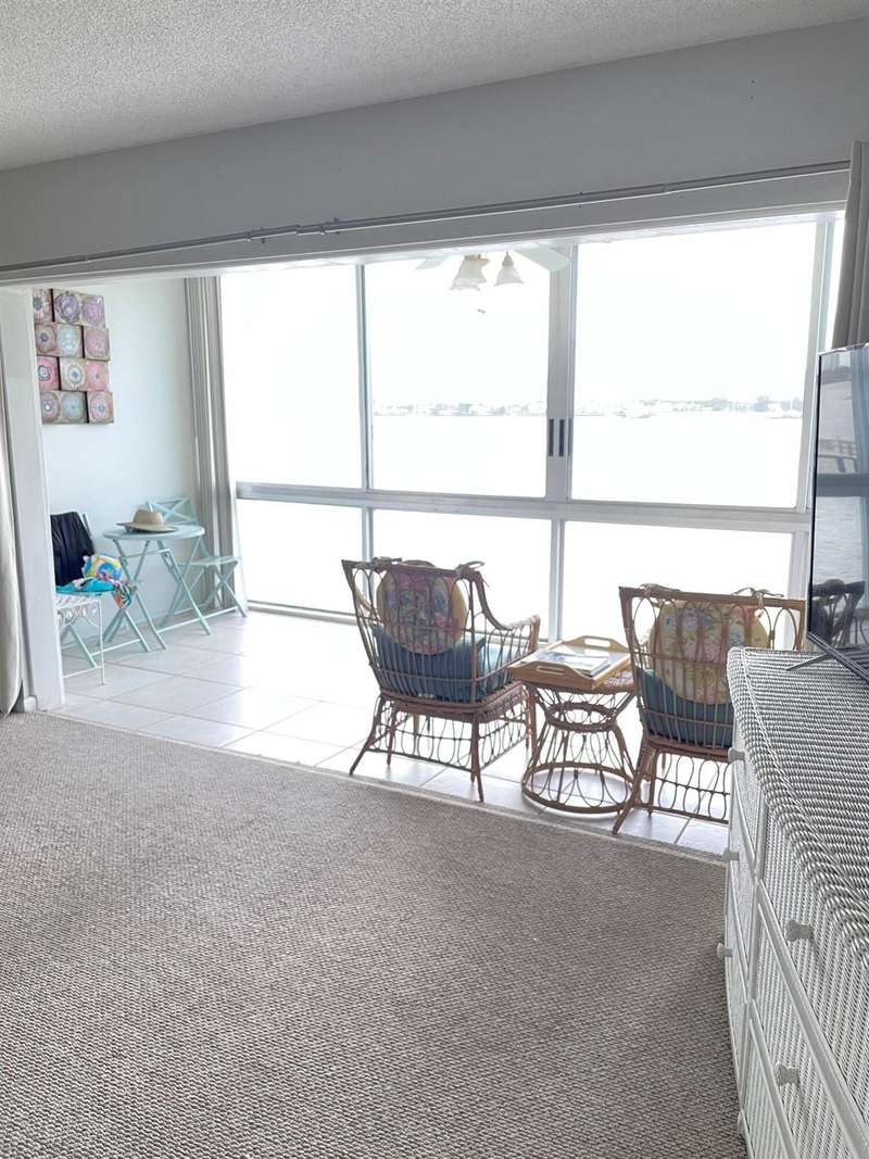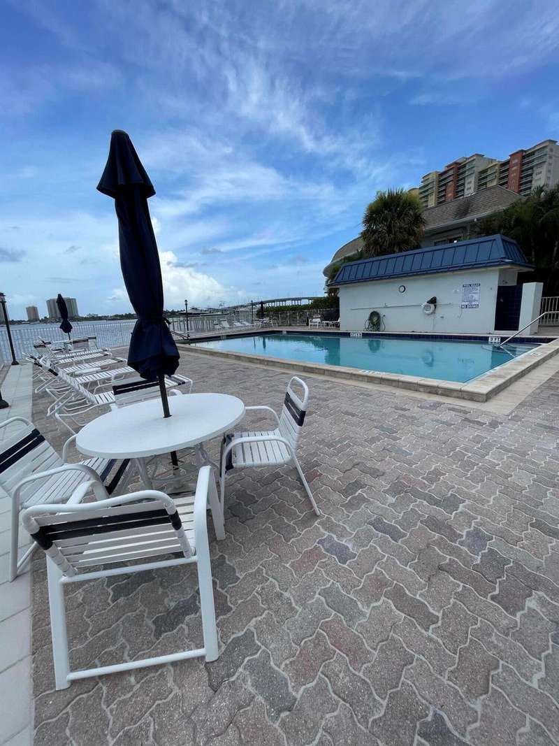 Welcome to your serene slice of paradise! This condo is on the third floor with 1 bed,1 bath. There is a large entryway leading to the living and dining area that is light and bright with an enclosed balcony with stunning views of the widest part of the intercoastal waterway. The kitchen is open to the living room and dining area. The Primary bedroom has 2 large closets with lots of light. There is also a spacious bathroom with a tub. 1 assigned parking space and plenty of guest parking available. Amenities include an elevator, community pool, gated community, laundry facilities plus minutes to the beach, restaurants, shopping and airport.