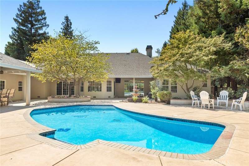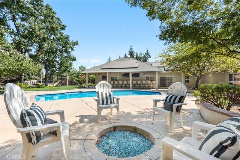 Resort-Style Living! Play, relax, entertain - all at home. Tucked away in a desirable cul-de-sac, this stunning home is designed for both everyday comfort and unforgettable entertaining. The heart of the property is the resort-style backyard, complete with an inground gunite pool, ingound spa, firepit, bocce ball court, and volleyball court—your own private retreat for fun and relaxation. An outdoor kitchen pavilion elevates gatherings with expansive counter space for seating up to 10, built-in heaters, and TVs for year-round enjoyment. Whether hosting game day or a summer pool party, this space has it all. Inside, a separate game room with its own HVAC system, ¾ bath, wine storage, and space ready for a kitchenette offers endless possibilities—from entertainment space to potential living quarters. Sustainability meets luxury with a powerful 27.2kW owned solar system (installed 2021), generating more than enough energy to run the entire property. The thoughtful interior floorplan of the main house includes a kitchen fit for even the most discriminating chef, cozy breakfast nook with an amazing view of the backyard, formal dining space and separate living areas. The spacious main suite and bath also has it's own access to the backyard and the split bedroom layout, with two bedrooms on the other side, allows for privacy. The custom office with built-in Murphy bed gives you the flexibility to use as a 4th bedroom. The 3-car garage with EV charger adds modern convenience. This home blends comfort, efficiency, and luxury amenities into a one-of-a-kind property that’s truly move-in ready.