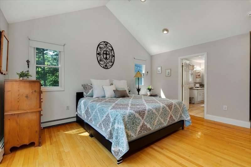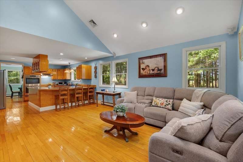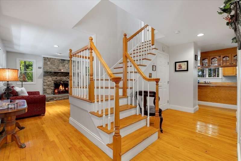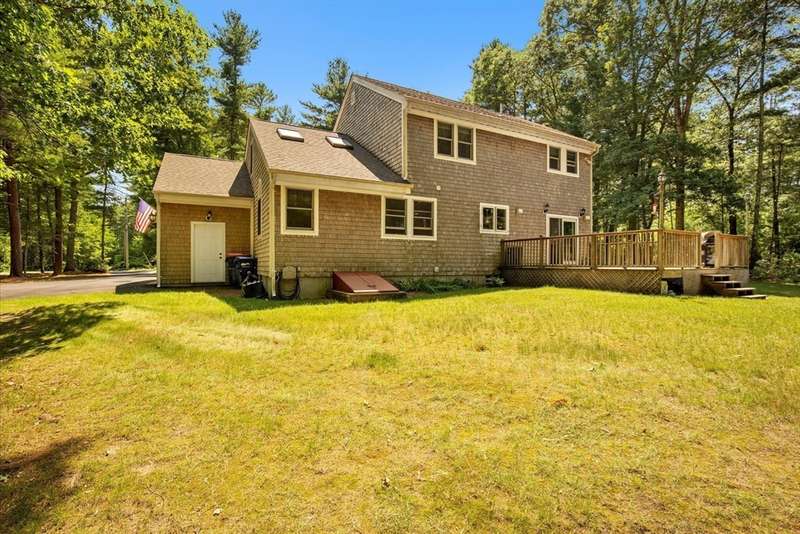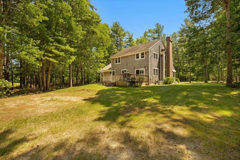 Continue to show. Home sale contingency......Abutting the serene Sherman Cranberry Bog, this beautiful Colonial offers 2,306 sq ft with 3 bedrooms, 2.5 baths, and a 2-car garage on a peaceful 1.49-acre lot. Enjoy bog views from the back deck, where deer and birds are frequent visitors. Features include an open floor plan, central A/C, hardwood floors throughout and walk-in closets. The main level boasts a kitchen with ample cabinetry and breakfast bar, open to a cathedral-ceiling family room and a dining room with slider to the deck. A cozy fireplaced living room, half bath, and a separate laundry room complete the first floor. Upstairs, the spacious primary suite offers cathedral ceilings and a tiled full bath. Two additional bedrooms also have walk-in closets and a versatile loft could serve as a 4th bedroom, office or playroom. The basement has high ceilings which offers great potential for finishing.