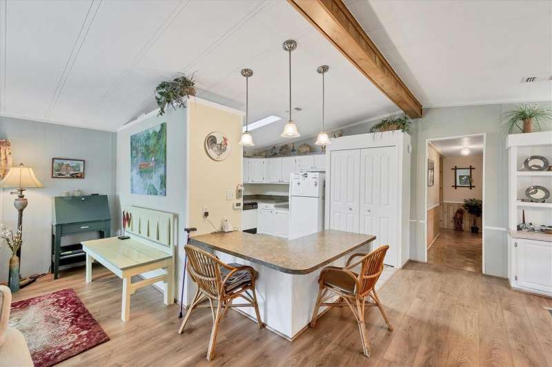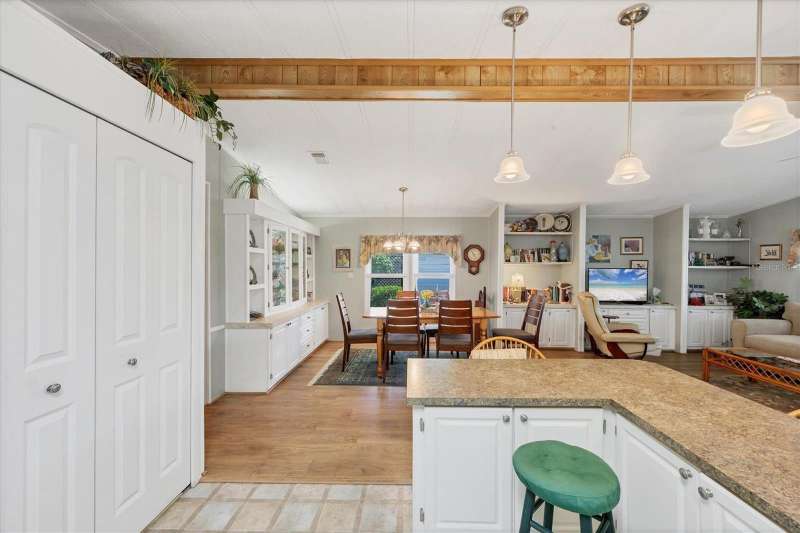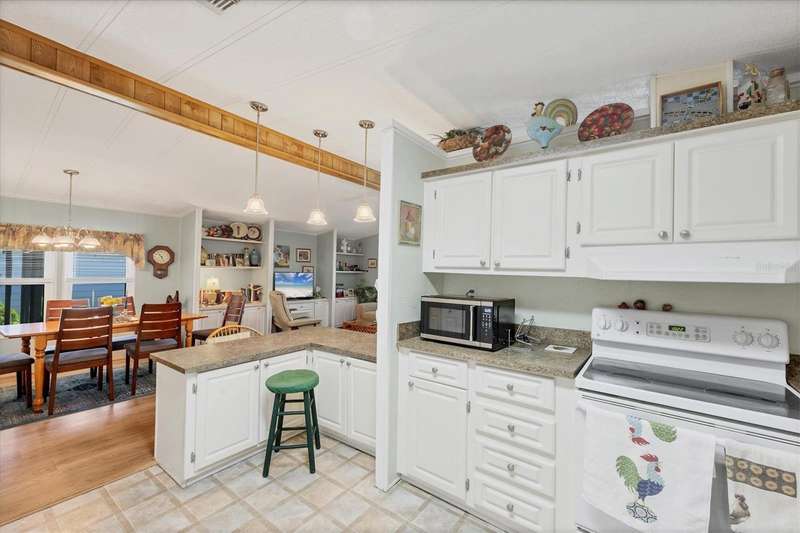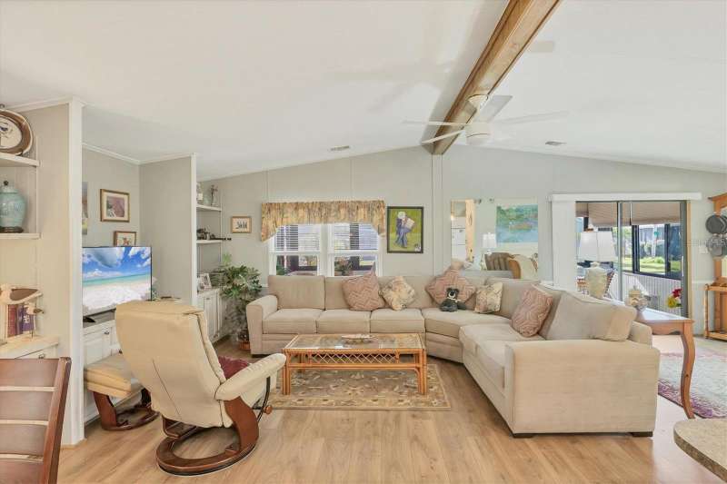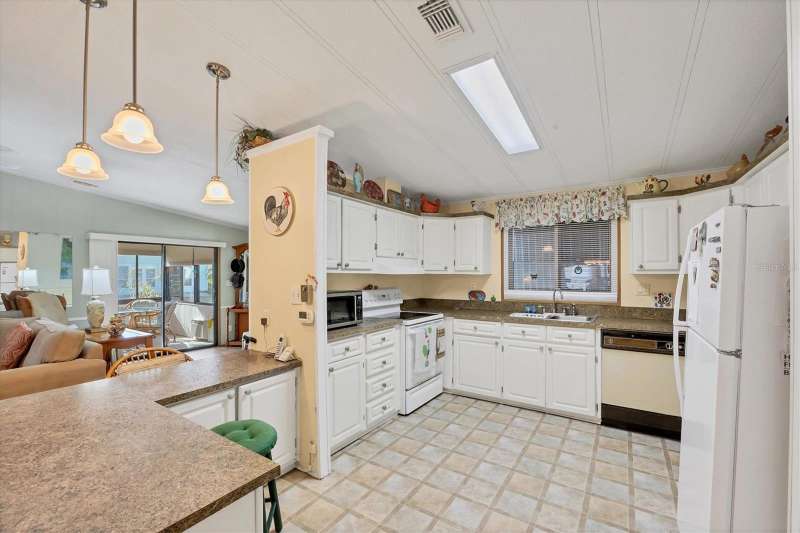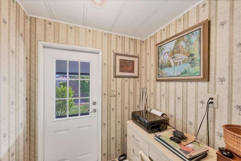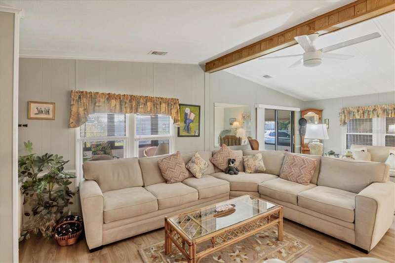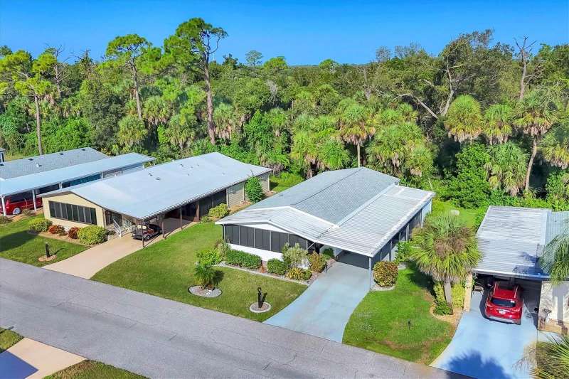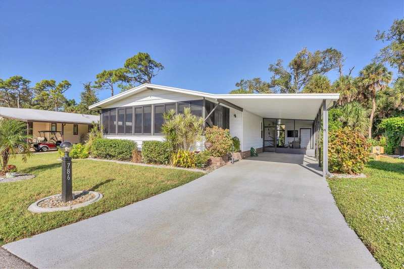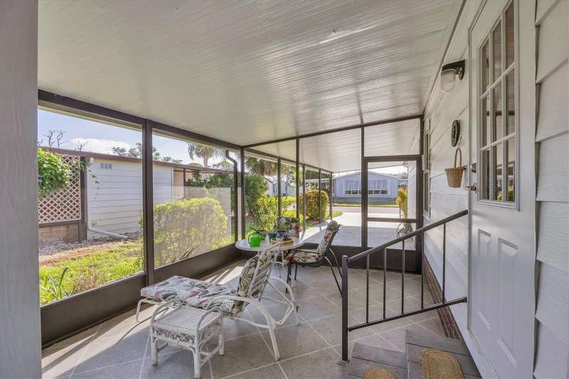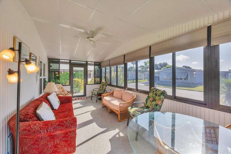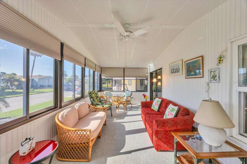This meticulously maintained and furnished home, in the highly sought-after gated community of Tangerine Woods, is an active and friendly, 55 and over community, and it can be yours, if you act quickly! For your leisurely pleasure, enjoy the large heated pool and clubhouse, with exercise room and library, tennis and pickleball courts, walking trails, shuffleboard and so much more! Upgrades and improvements include: a new roof with gutters in 2023, new great room flooring in 2020, plumbing re-piped in 2020, all cabinetry in kitchen and great room were refaced, new refrigerator in 2024, new microwave in 2025 and newer outside doors and screen doors. The enclosed front lanai with its sliding windows, shades, and portable a/c, offers additional living space, which is just perfect for entertaining family and friends. Not to mention the large screened side lanai is the perfect place to sip your morning coffee! Ideally located, this home is close to the pool, clubhouse and recreational facilities, and boasts a private yard as well! The low monthly HOA payment of $204 includes cable, internet and grass cutting, and Tangerine Woods is pet friendly! This community is close to Historic Dearborn St., which provides casual dining, evening entertainment, locally owned shops and a Farmers Market on Thursdays. The local beaches are just 4 miles away, as well as many local golf courses, and world class fishing! Make your appointment today to see this gem, as it could be your next "Home Sweet Home"!