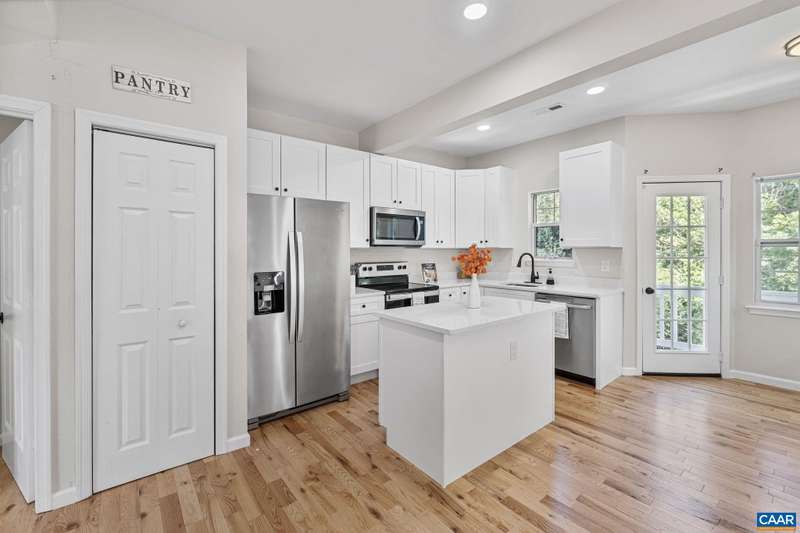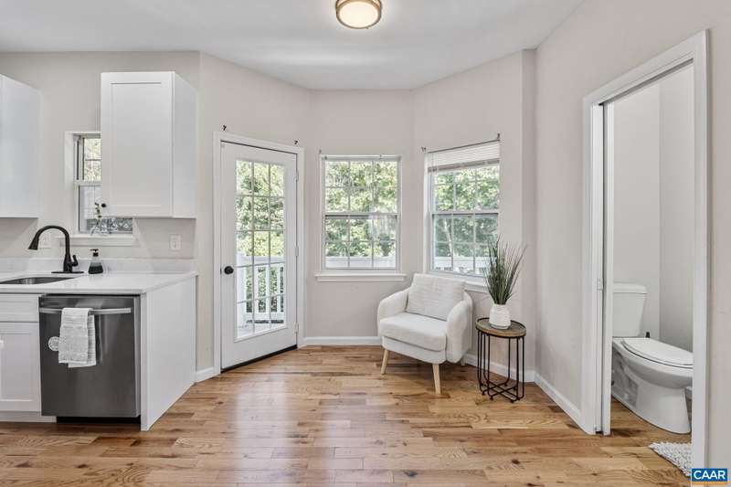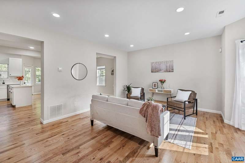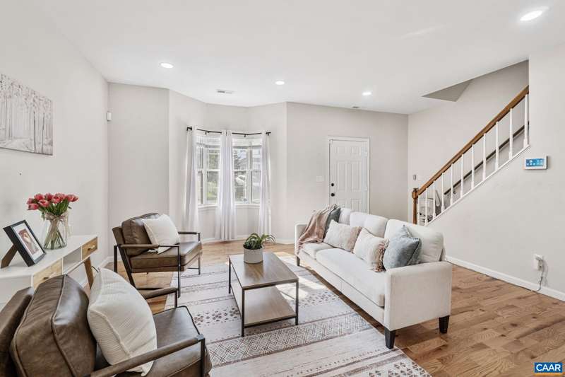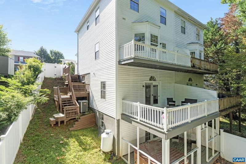 Bright and beautiful townhome in Briarwood! Close to NGIC and DIA, CHO Airport, shopping, and more. This quadplex features a main level open floor plan with an abundance of natural light, 2 bedrooms with en-suite bathrooms on separate floors, porches/decks on 3 levels, and extra privacy with a yard that backs up to the woods and new privacy fence (2/24). It was renovated in 2023 with an open floor plan, new kitchen, appliances, and hardwood floors on main level. Roof, siding, and carpets also replaced in 2023. In 8/23 the attic was air sealed and insulated and the crawl space was insulated and had a vapor barrier installed. HVAC 2019 and Water Heater 2018. Wheel chair ramp and chair lift can stay with the house or easily be removed upon request!