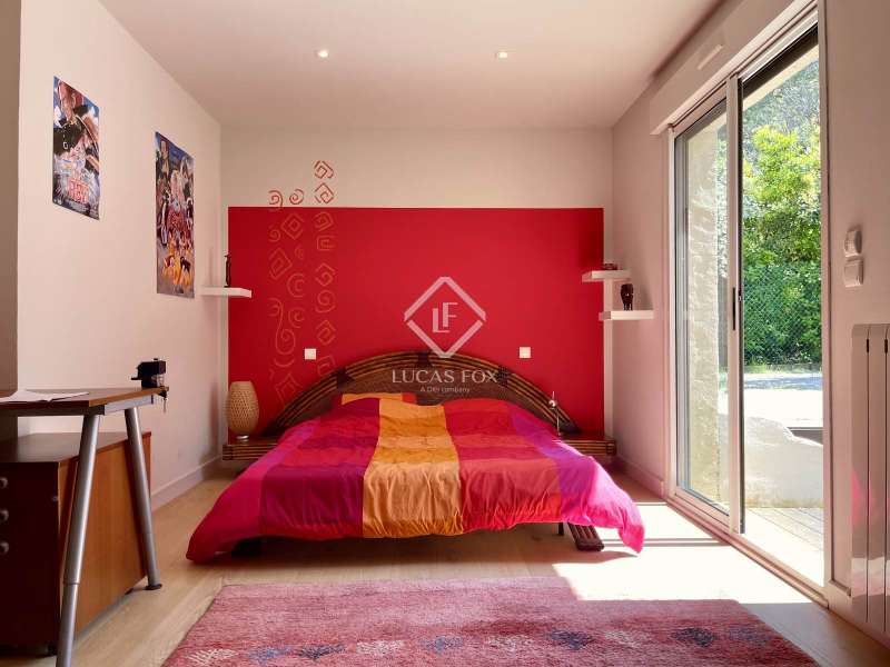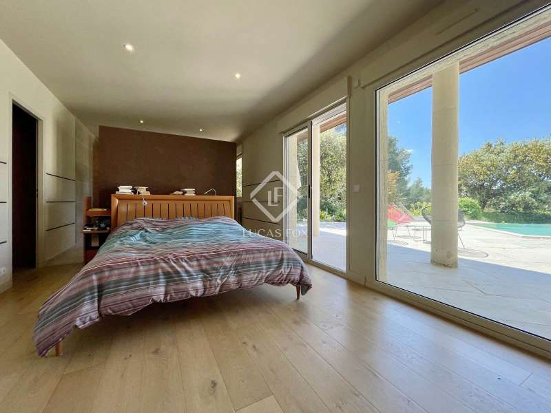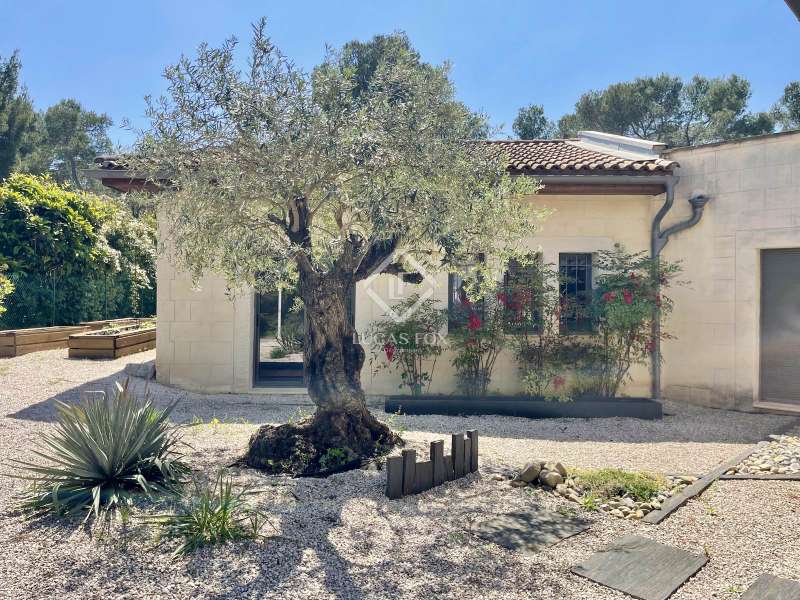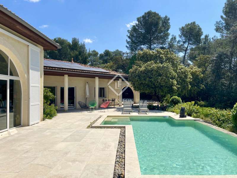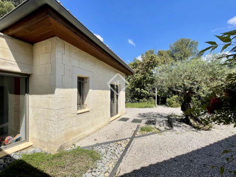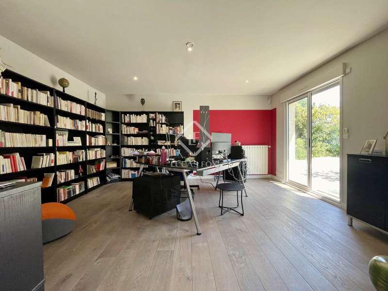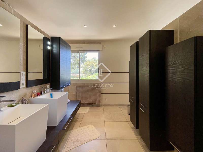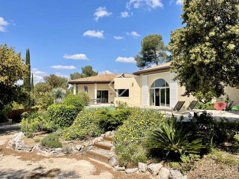 Lucas Fox International Properties, located at the end of a quiet cul-de-sac and on the heights of Montferrier-sur-Lez, this charming single-story house of 260 m² on a plot of 1,965 m² is in excellent condition. Its assets are numerous: well-designed layout with spacious rooms, high-end materials tastefully chosen, magnificent volumes, multiple openings, exceptional exposure and brightness, particularly on the large terrace where the infinity pool is located. The house was completely renovated around ten years ago. Upon arrival, you enter directly from the entrance hall into a vast cathedral-style living room. There are also large open spaces in a row: living rooms, dining room, and kitchen. The Arthur Bonnet kitchen and Smeg appliances contribute to the comfort and elegance of the space. The main rooms are arranged around the terrace and offer a most peaceful view. Enjoy the privacy of an infinity pool, which occupies an easily accessible central space. On the night side, there is a master suite with a Carré d'O shower room, toilet and a large dressing room as well as two spacious bedrooms opening onto the garden. A shower room with two sinks and a toilet complete the ensemble. On the entrance side, a spacious office with a view of the garden allows you to work in peace and quiet and can be transformed into a bedroom or a suite with a shower room if necessary. The landscaped garden allows you to move around the house, including a vegetable garden, a garden shed, several compost bins and a chicken coop. The house is equipped with a recent heat pump and 12 photovoltaic panels as well as an alarm system and fiber. The crawl space construction is perfectly sound and the property has been exceptionally well maintained. The numerous storage spaces and additional rooms are an additional asset: laundry room, garage with a large storeroom, pool technical room allowing storage of bicycles... Get the complete file and more information from your dedicated agent, Elodie SALA Commercial Agent - RSAC n° 899 543 151 Montpellier. Information on the risks to which this property is exposed is available on the Géorisques website: www.georisques.gouv.fr.