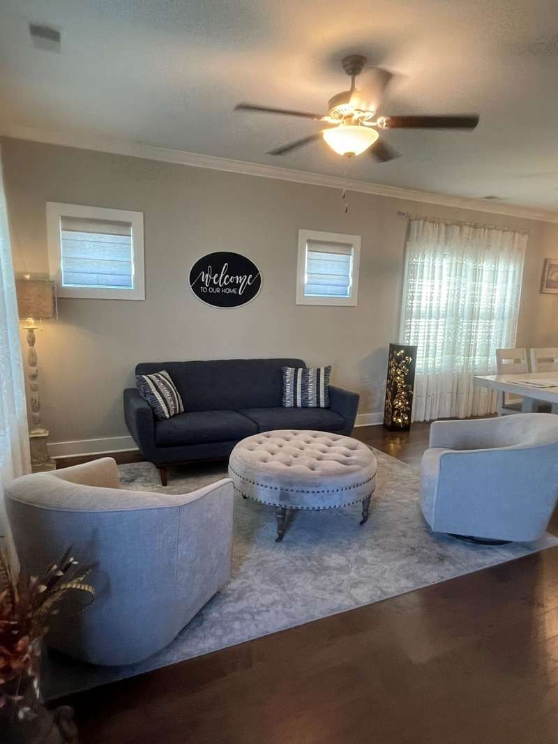Resort Style Living In Harvest Point Designer appointed home has it ALL! Gorgeous open floor plan that offers 4 bedrooms, 2.5 bathrooms with over 2,000 square feet of living. Upgraded features include: hardwood and tile flooring, stainless steel appliances, granite countertops, light fixtures and ceiling fans. Primary suite downstairs with large walk in closet, garden style tub, washer & dryer included with laundry room. Enjoy the open loft upstairs adjoining two large secondary bedrooms. Attached 2 car garage, fiber optic, and whole home water filtration system, and fully fenced in backyard. Minutes away from The Crossing Shopping Center and restaurants. Community Amenities include resort style pool, pavilion, playground, and dog park. Live a lifestyle of fun and entertainment all hosted by the HOA!No self showings. Small dogs welcomed under 35 lbs with pet fee. Deposit and $125 admin fee upon approval. www.cryeleike.com.
