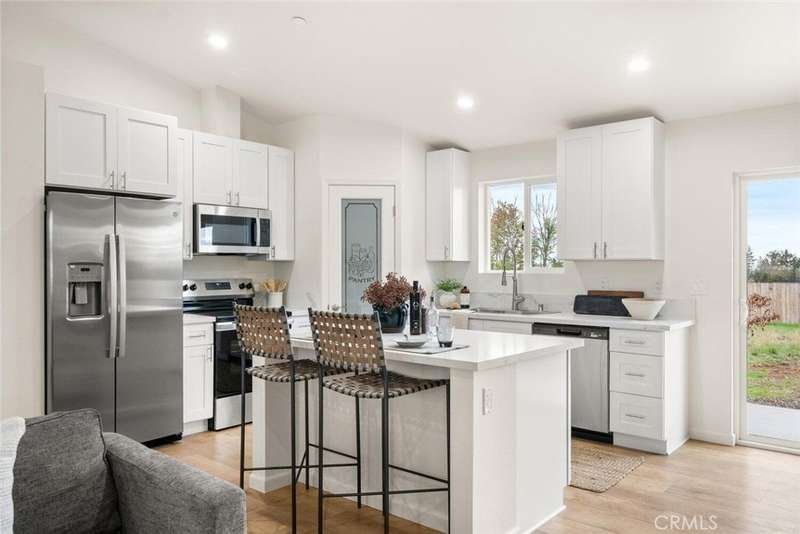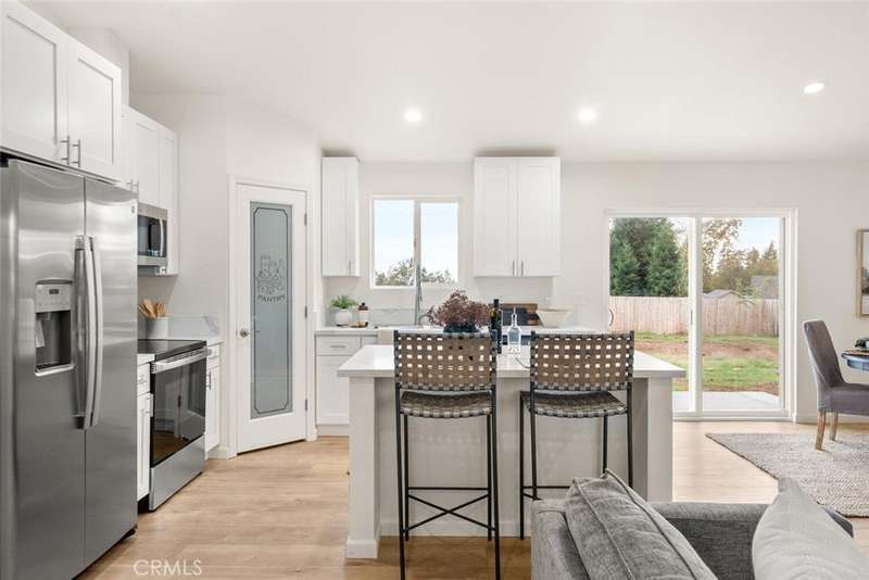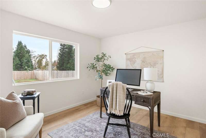 This brand new construction home located on the Eastside of town is situated on over a quarter acre, with 2 bedrooms, 2 bathrooms plus a den. The main living space has warm luxury vinyl plank flooring and a vaulted ceiling with recessed lighting that is open to the kitchen. The kitchen has a spacious island, bright white custom cabinets, a walk-in pantry, solid surface counters, and stainless steel appliances. The master bedroom is roomy with a walk-in closet and an en suite bathroom with a dual sink vanity, tile floors, and a tile shower. There is a bedroom located near the master while the den is off the kitchen making this space perfect for an office or extra sitting room. The guest bathroom features a tub, tile floors, and large vanity. There is an indoor laundry room, ductless mini splits for energy efficiency, and an oversized owned solar system. Outside, you have plenty of space for activities in the fully fenced backyard and RV parking in the front. The street is very quiet and private so you can sit on the darling front porch and enjoy the peace and tranquility that this side of town has to offer! Come swoop this one up and call it home!