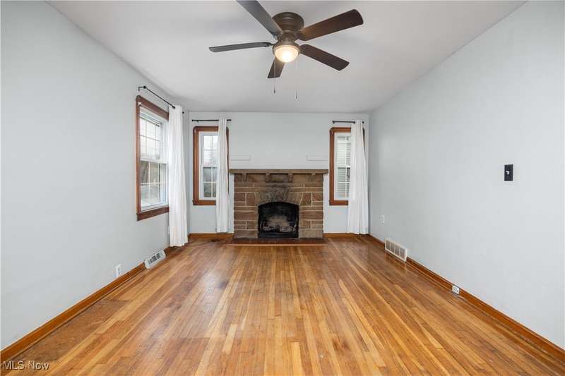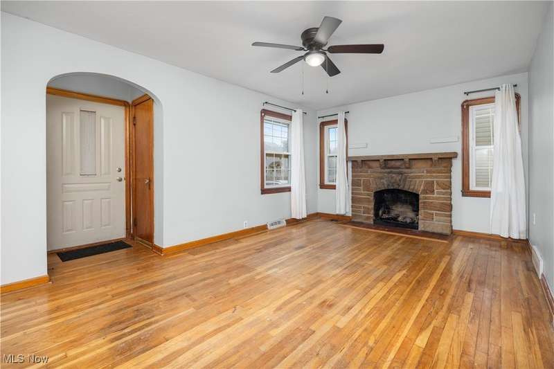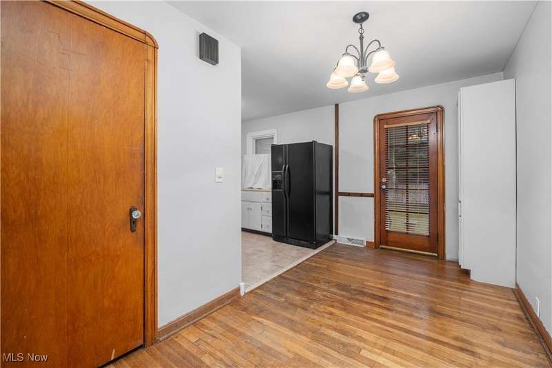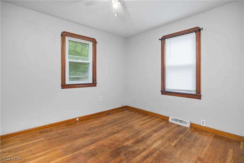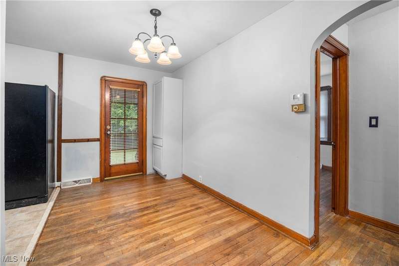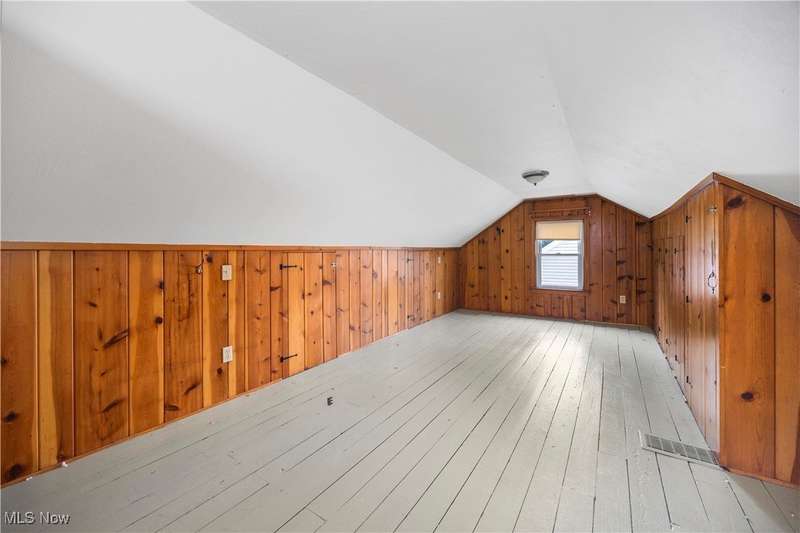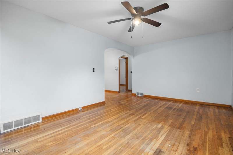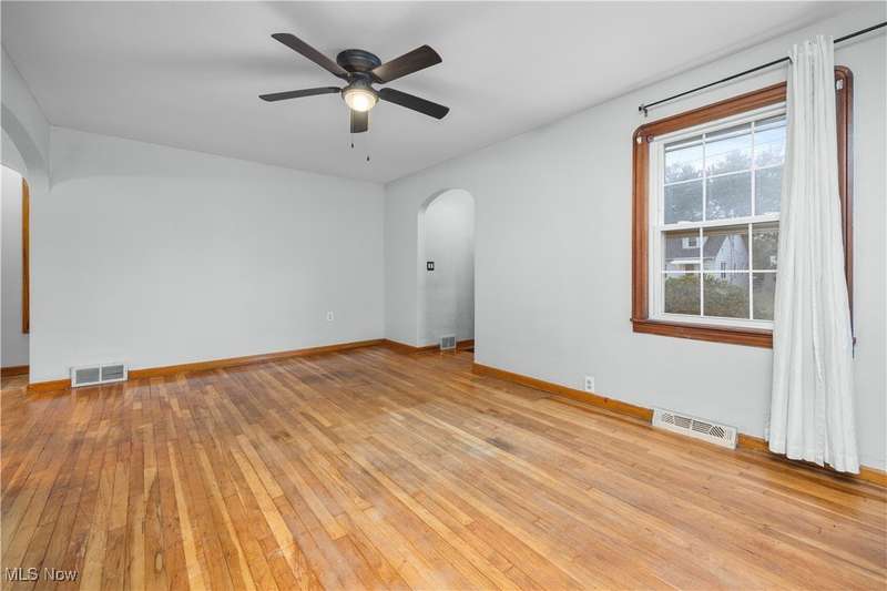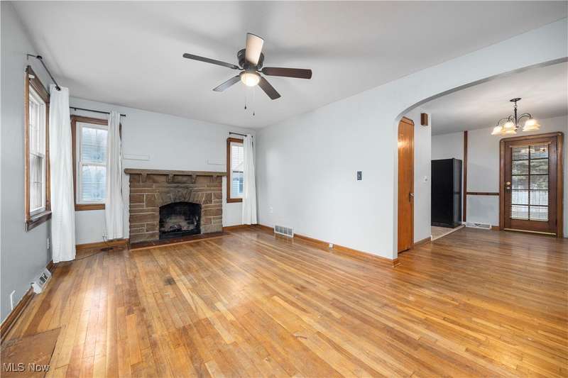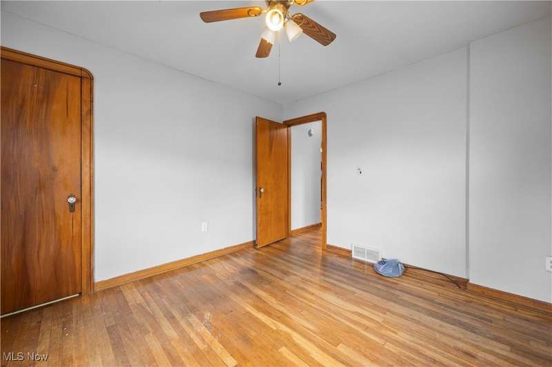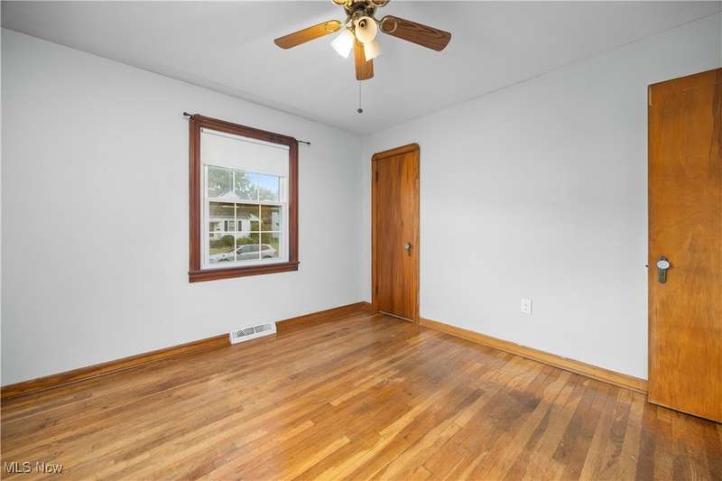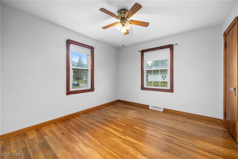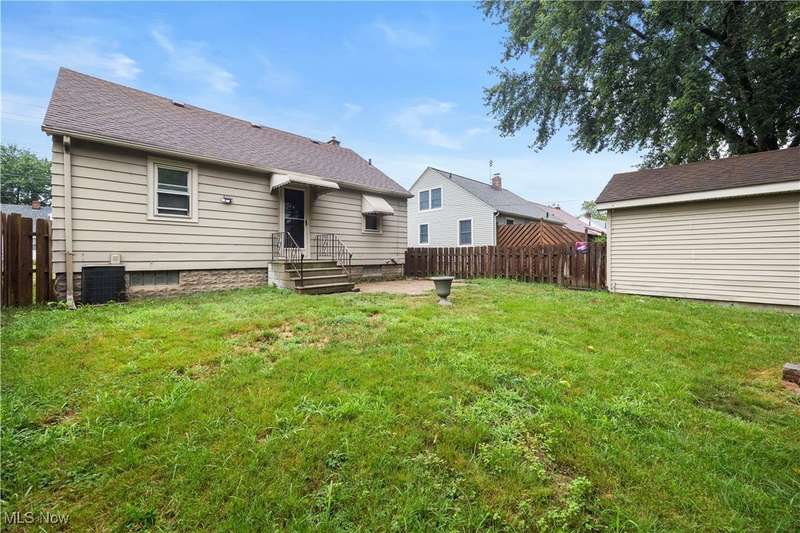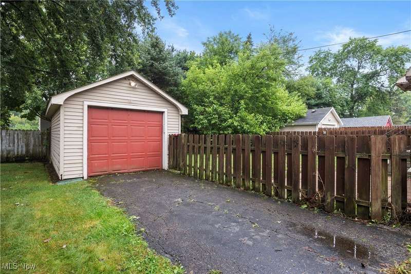 Welcome to 1041 Bell Ct in Elyria! Conveniently located near major highways and just minutes from shopping and dining, this charming home offers both comfort and accessibility. Inside, you'll find 3 bedrooms, including a spacious upstairs primary retreat featuring beautiful hardwood flooring and timeless knotty pine that adds warmth and character. Two additional bedrooms are tucked behind the expansive main-floor living room, which also boasts gleaming hardwood floors and plenty of natural light. The eat-in kitchen offers ample cabinet space and flows easily into the rest of the home. You'll love the fresh paint throughout and the updated full bathroom that brings a modern touch to this classic layout. Downstairs, a large, clean basement offers endless potential-ready to be finished to suit your lifestyle needs. Step outside to a fenced-in backyard, perfect for privacy, pets, or entertaining. A long driveway leads to a detached garage, all set in a quiet, low-traffic neighborhood that's great for evening strolls or peaceful mornings in your private backyard. Whether you're a first-time buyer or looking to downsize without compromise, this well-cared-for home is a must-see!