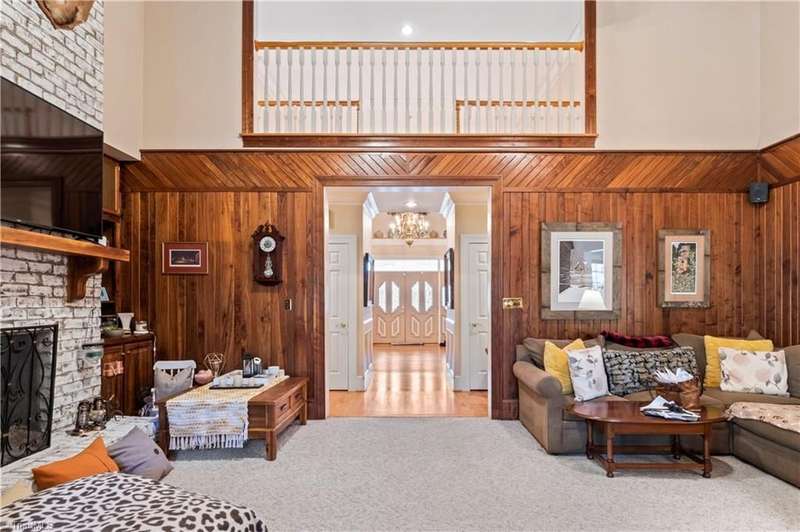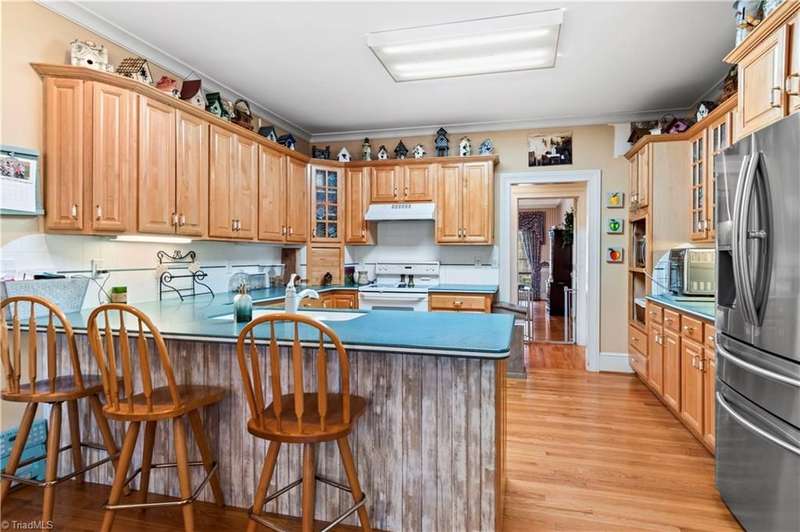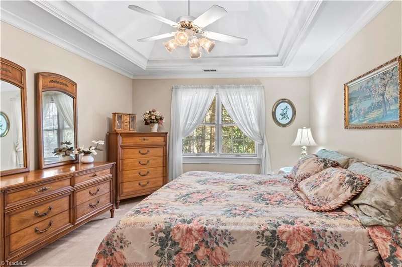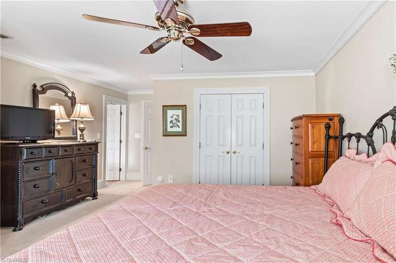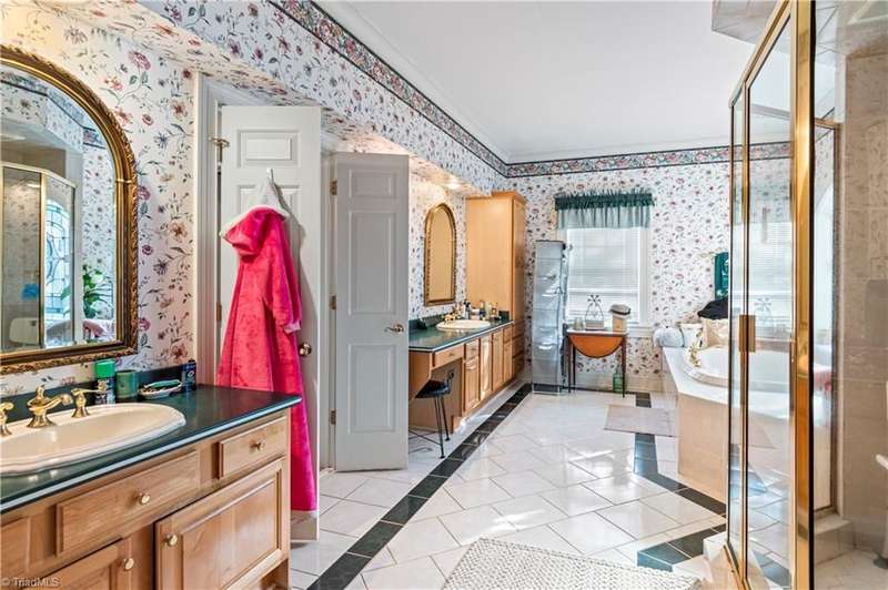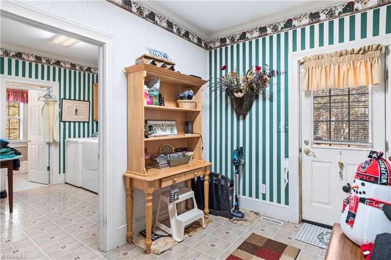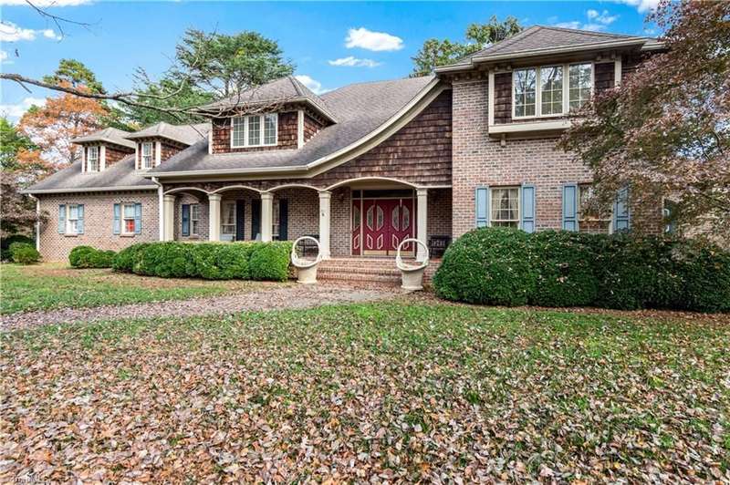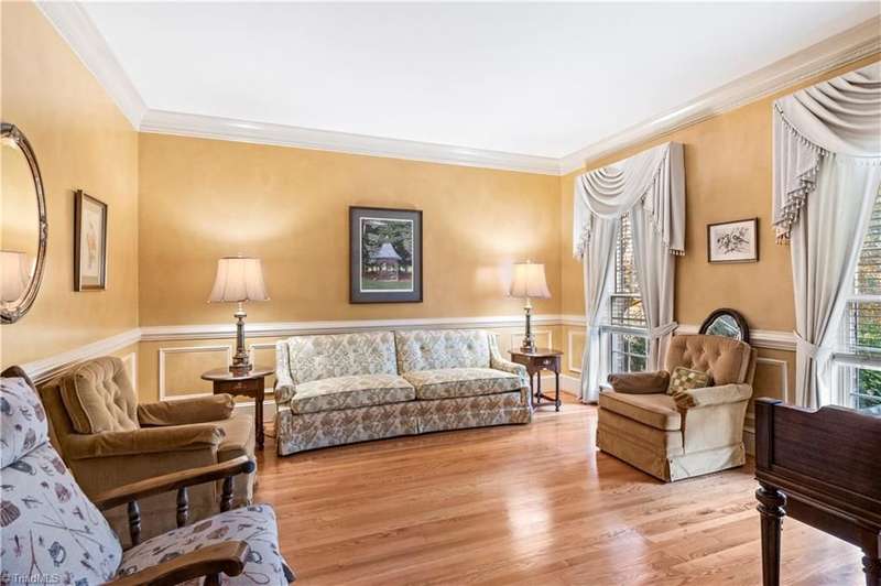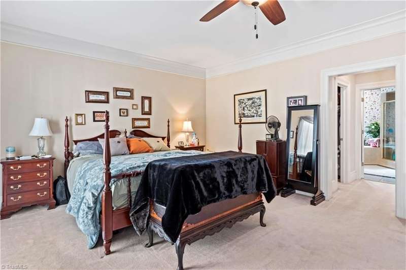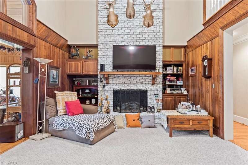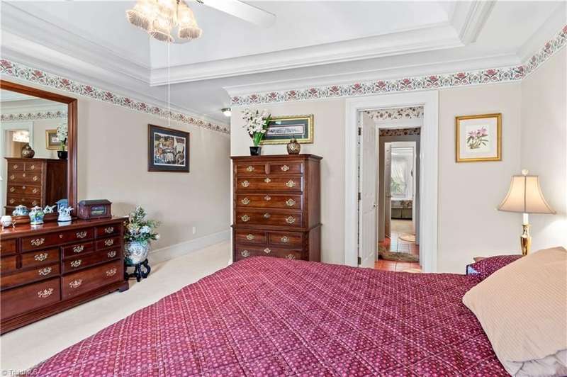 This grand estate is nestled in a highly sought-after, gated estate community that is accommodating to horses, with each property boasting its own expanse of land. This property is 33+/- acres adjacent to the Yadkin River & features a robustly constructed home spanning 5800SF+/- w/5BR & 4.5BA, exquisite sunroom, huge pantry, & beautiful setting. For those requiring additional space, there is an unfin bsmt ready for customization. Welcome guests in the expansive foyer, which is highlighted by an elegant dbl staircase. The residence showcases exquisite hardwood floors, a beautifully coffered dining rm ceiling, a large ML primary bedroom en suite, & a spacious second-floor bonus room that can be the 6th BR(has closet & windows). Surrounded by beautiful wooded and cultivated land that extends to the Yadkin River. This property offers unparallel privacy. There is also a 2800+/-storage building w/a garage. Property Offered at a price below its recent appraisal. Come see before it's sold.