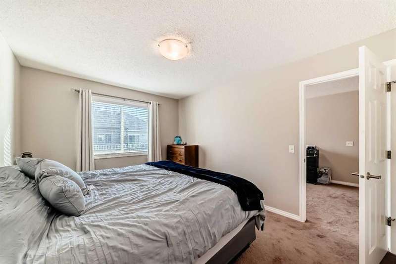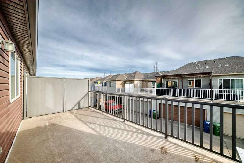Welcome to the heart of southwest Airdrie — where convenience meets comfort! Located just off the new 40th Avenue interchange, this beautifully maintained 2012 row townhouse offers quick and easy access to everything Airdrie and Calgary have to offer. You’ll love being just minutes from Windsong School, Coopers Crossing Shopping Centre, CrossIron Mills Mall, and the Calgary Airport — the perfect location for busy families and commuters alike. This NO CONDO FEE home is individually titled and features a double attached garage and low-maintenance yard. Inside, you’re greeted with elegant hardwood floors and an open-concept main level that flows seamlessly between the kitchen, dining, and living areas — perfect for entertaining or relaxing at home. Upstairs, enjoy a spacious bonus room — perfect for a home office, cozy family movie nights, or a quiet den — with access to your private balcony above the garage, ideal for morning coffee or evening sunsets. The primary bedroom includes a private ensuite, while two additional bedrooms and a 4-piece bath complete the upper level. The unfinished basement with a rough-in for a future bathroom provides the perfect opportunity to expand your living space as your family grows. Come experience this vibrant and accessible area of Airdrie — your new home awaits!