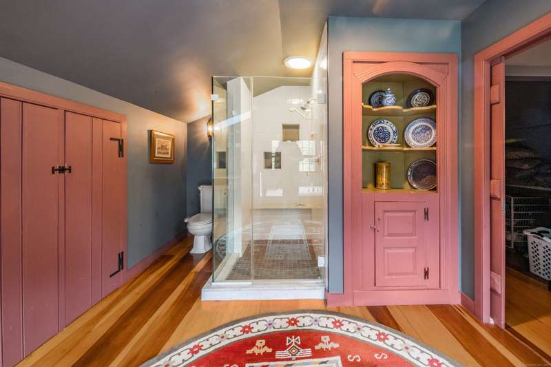 Enjoy living in one of CT's most coveted historical treasures, the Pelatiah Leete House! Perched on a private, sweeping knoll with WATERVIEWS of Shell Beach Lagoon running into Long Island Sound, (located across the road) this Colonial Home is as close as one gets to genuine American History. Only 5 families have inhabited this 1710 English Post & Beam home that has survived Colonial Times & a chapter in the Revolutionary War. One of the first CT structures to be admitted to the National Register of Historical Places, NO building restrictions! Lovingly restored to its authentic past, this Crimson seaside beauty is an antique purist's dream come true! Attention to period details is evident: 4 Fireplaces (beehive ovens) Original Wide Board Chestnut Flooring, Built-Ins, Post & Beam Architecture, Corner Cupboards. Formal Dining Room, Parlor & large Living Room all w/Fireplaces; Den & 1st Fl Full Bath. Kitchen has wine cooler, Pantry & recently updated Carrara Marble counter tops. Dutch Doo