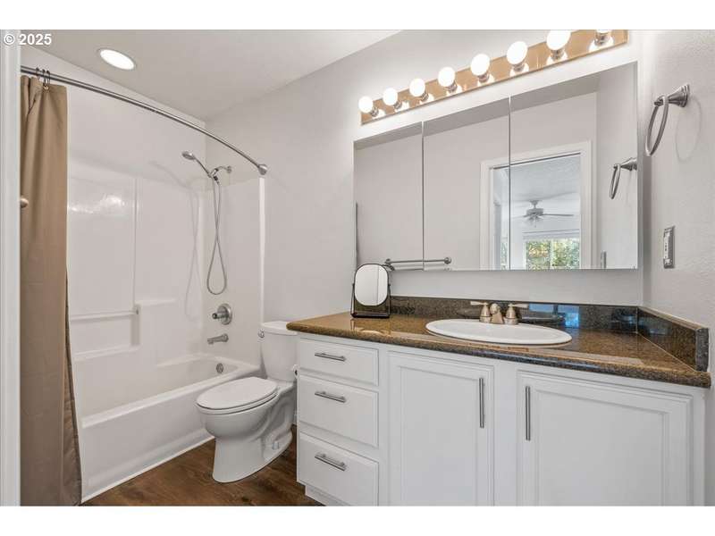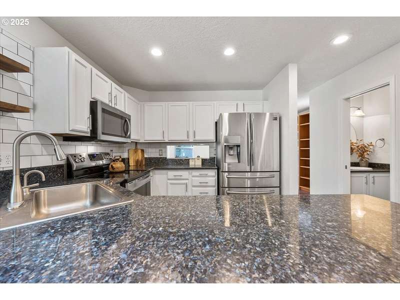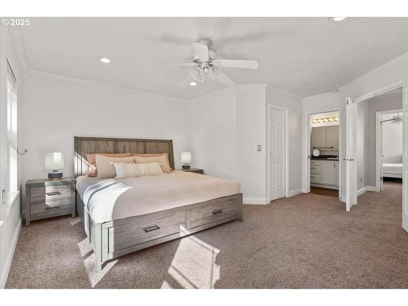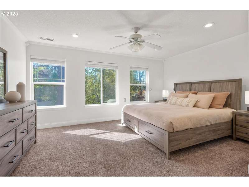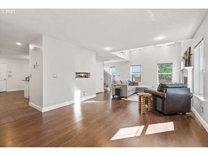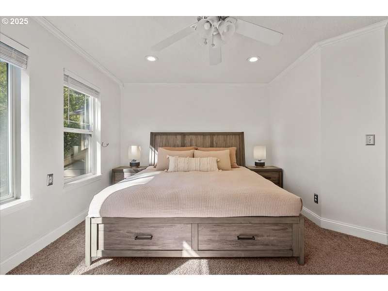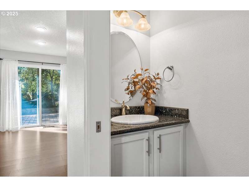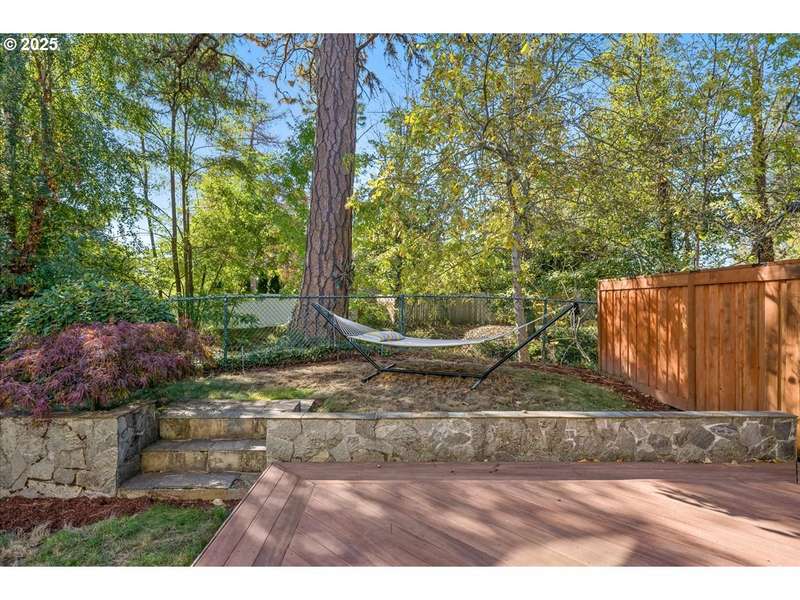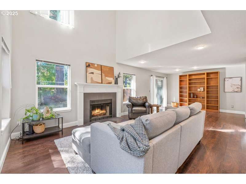 Tucked away in a close-in SW Portland/Tigard neighborhood, this light-filled townhome has sophisticated style, and is incredibly spacious. The fantastic floorplan, huge yard and excellent privacy rivals most single-family homes! When you first come inside, the living room with a vaulted ceiling will exceed all expectations - it's a fantastic living area with two stories of windows that frame the trees & sky, and let in SO MUCH natural light. Such a bright, open atmosphere that lives much larger than you'd expect. The living and dining areas are wide open, great for entertaining, with a slider onto the deck and huge backyard. A rare and coveted wood-burning fireplace for cozy evenings with a crackling fire. Nearly every window provides a view of the nature and mature landscape that surrounds this home. Crisp white kitchen with granite counters, induction stove, stainless appliances (all appliances included!) plus a pass-through to the living room, and great storage with pantry and broom closet. Each of the two excellent primary suites includes its own full bath and walk-in closets with organizers; ideal for guests, roommates, or a home office setup. This may be the most impressive backyard you've seen in a townhome; a generous deck, plenty of sun & space for gardening, fully fenced, deck for summer BBQ's, enjoy private mornings & evenings surrounded by trees. Generous two-car garage. Laundry room on main floor (washer & dryer included!) New roof, new carpet and new paint done in 2020. New water heater in 2023. A location that feels like a park, but very central to all things Portland - just moments from trails, restaurants, and golf course. A perfect blend of space, light, affordability, livability — an absolutely ideal, move-in ready home for the buyer looking for both privacy and community. HOA Dues just $40/month. Open Sat and Sun 1-3