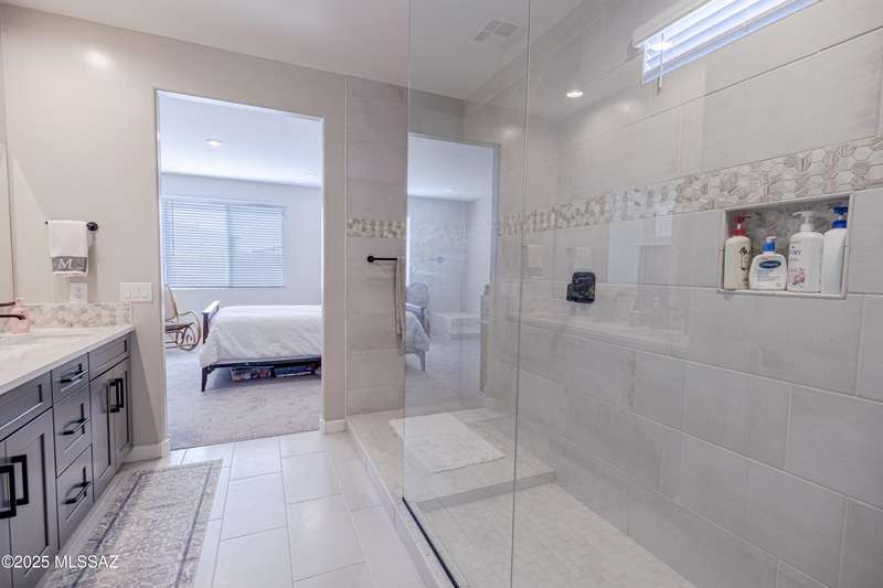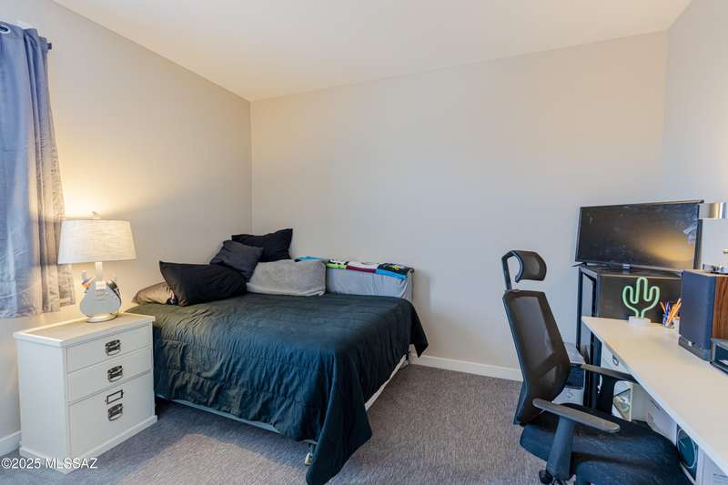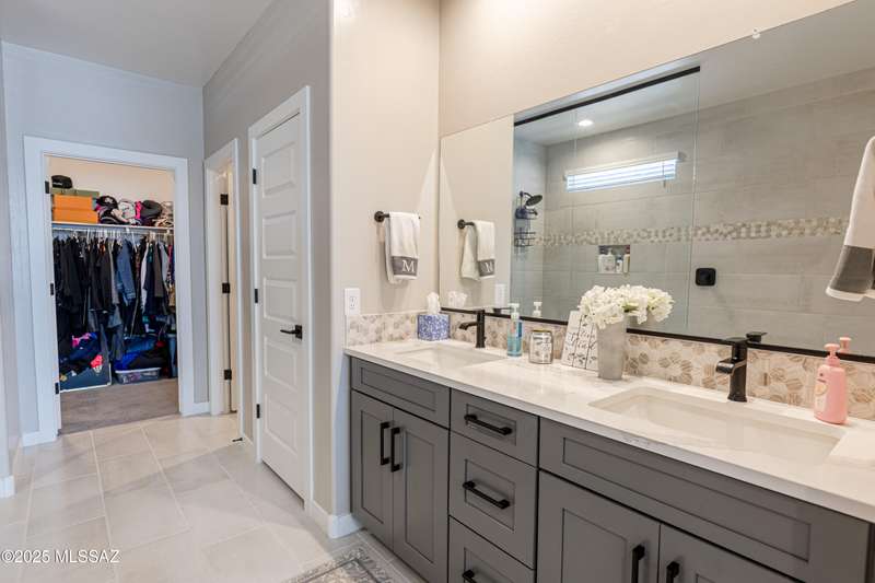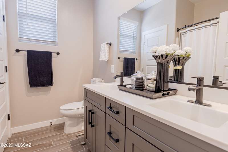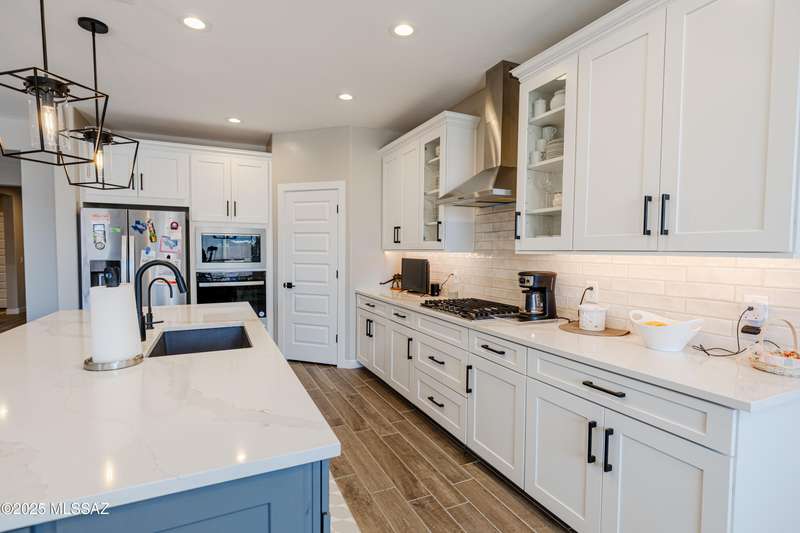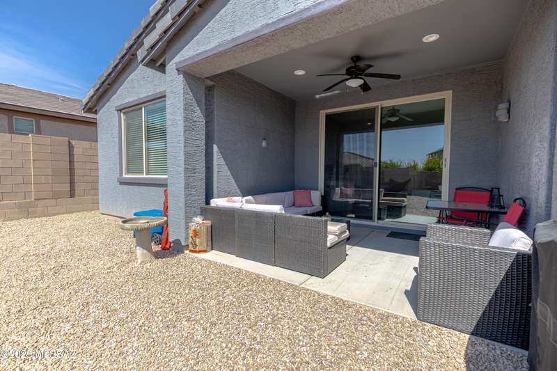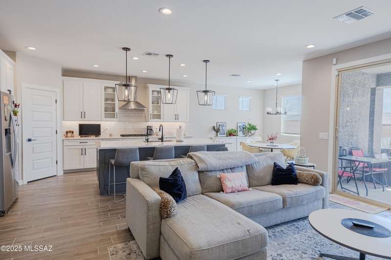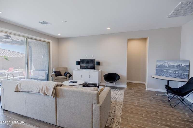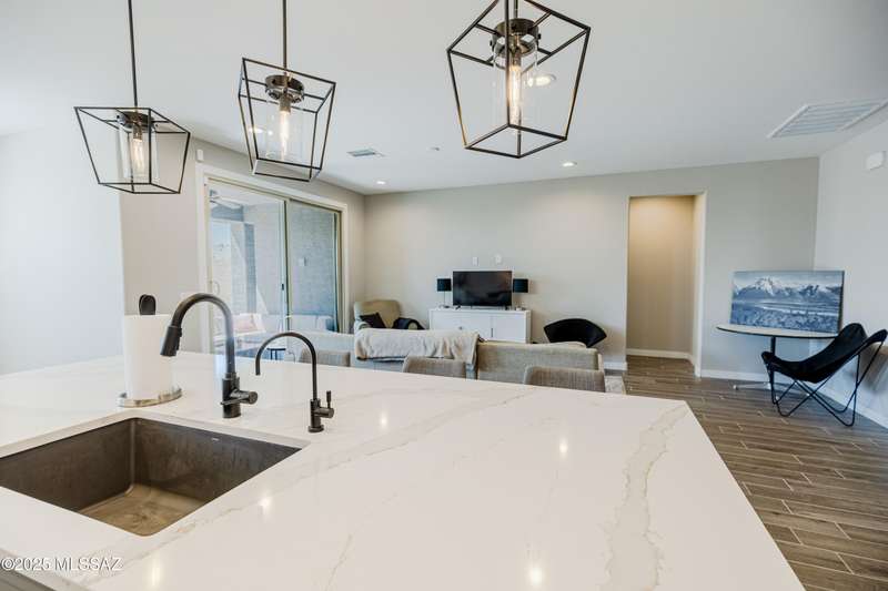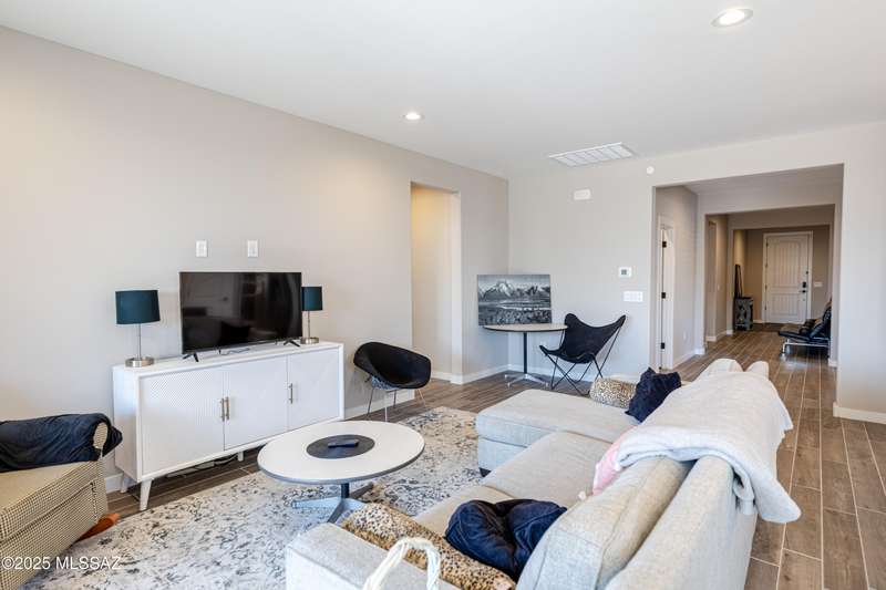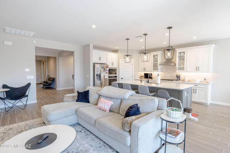 Come view this gorgeous, nearly new contemporary home in the popular Saguaros Viejos neighborhood in Oro Valley. Built in August of 2024, this home has over $110,000 in builder upgrades! The open concept interior layout is fantastic for both entertaining and daily living. The home offers 3 spacious bedrooms, a very large den, and 2.5 bathrooms. Premium finishes include stainless steel appliances, designer kitchen, quartz countertops, a HUGE primary shower, additional energy efficient recessed lights, extended 3-car garage, and so much more! Ideally located between Wilson K-8 & Ironwood Ridge High School, there are multi-use paths, trails, and plenty of shopping & restaurant options nearby. A pool sized backyard too! You'll be hard pressed to find a nicer Oro Valley home at this price!