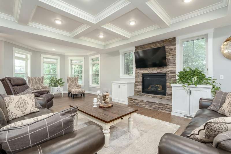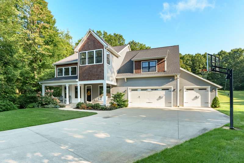 Welcome to a truly exceptional residence offering over 5,000 square feet of finished living space, set on a picturesque acre lot designed for privacy, comfort, and timeless appeal. This is not your typical cookie-cutter home - every detail has been thoughtfully crafted for style and distinction. Step inside to discover rich hardwood floors, elegant coffered ceilings, and architectural touches that set this home apart. The heart of the home is the stunning chef's kitchen, beautifully appointed with high-end finishes, custom cabinetry, and generous workspace - ideal for entertaining and everyday living. Each of the four spacious bedrooms features a private ensuite, providing both luxury and convenience for family and guests. The primary suite is a true sanctuary, with lavish proportions, in a spa-inspired bathroom. Unwind in the dedicated hot tub room, or enjoy the outdoors year-round from the covered front and back porches, ideal for morning coffee or evening gatherings. The home's exterior shake detailing adds warmth and curb appeal, further emphasizing its one-of-a-kind design. If you're seeking a refined, well-designed custom home with character and quality throughout, this property is a must-see.