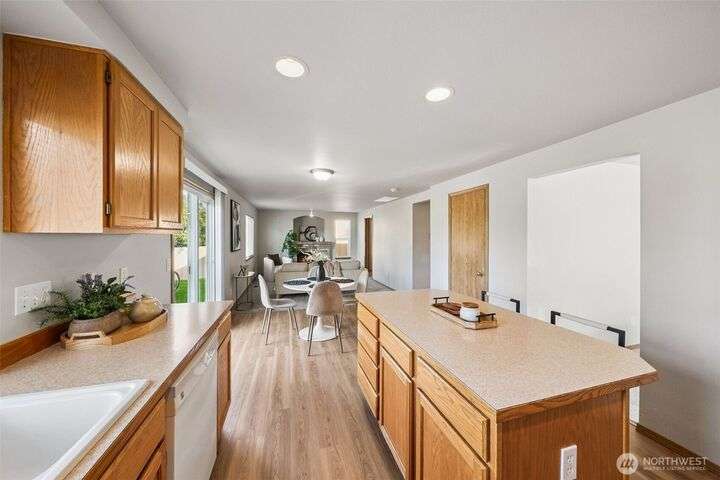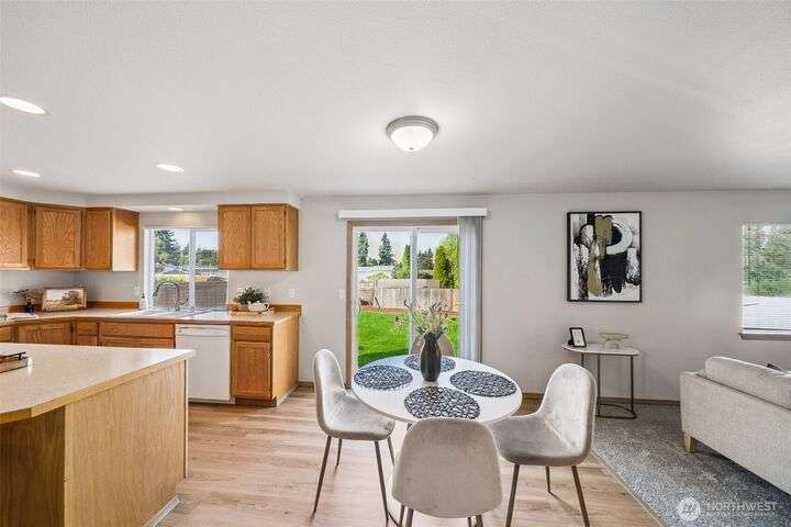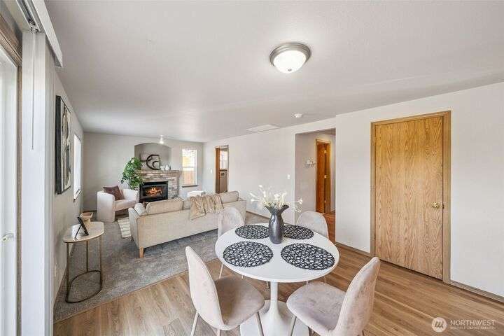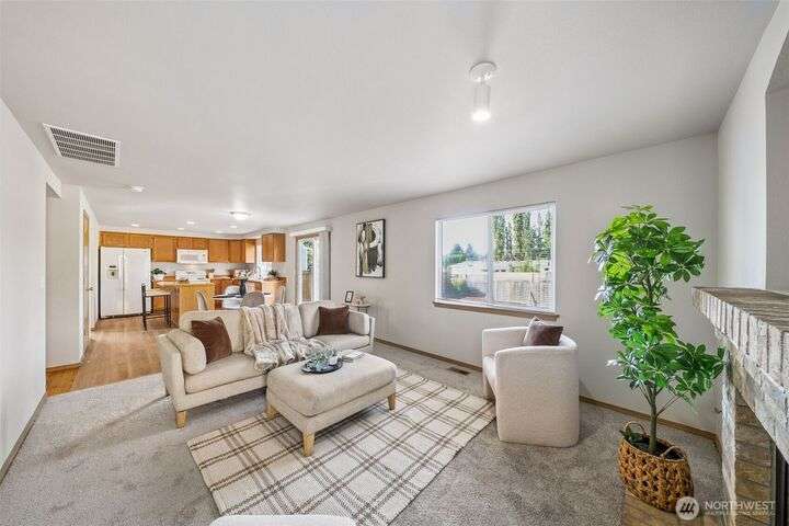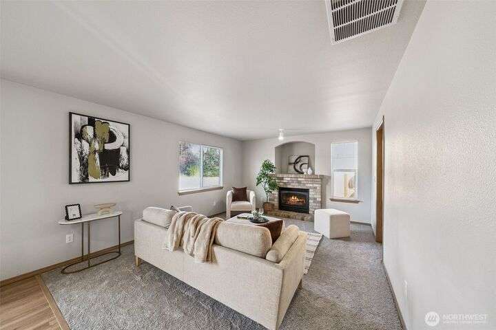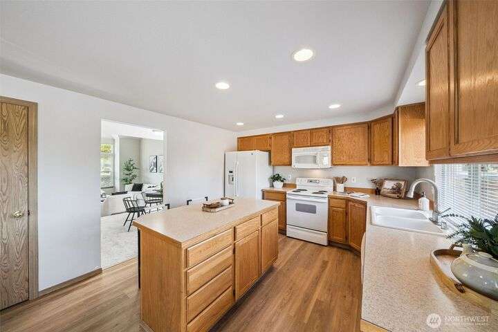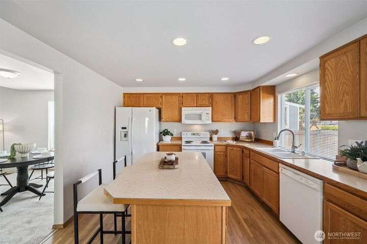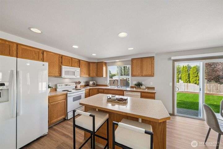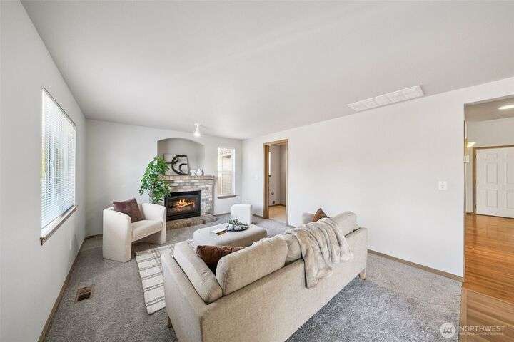 Beautifully Updated! Featuring hardwood entry, new gleaming laminate floors, new carpet & padding, fresh landscaping. Light-filled open floor plan boasts vaulted ceilings and skylight creating a bright & airy atmosphere. Formal living & dining, along w/ a modern kitchen equipped w/ all appliances, island bar, walk-in pantry, & cozy eating nook. Family rm features a gas fireplace. 4 spacious bedrooms, including a primary suite offering a walk-in closet, double sink vanity & a double headed shower. Laundry room/mud room located off the garage. 3 car garage!!! Situated on a hard-to-find lg lot, fully fenced yard and resting on a cul-de-sac. Excellent location to schools, parks, shopping, & convenient freeway access.