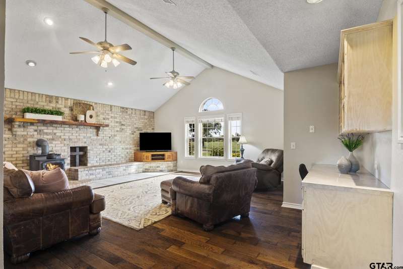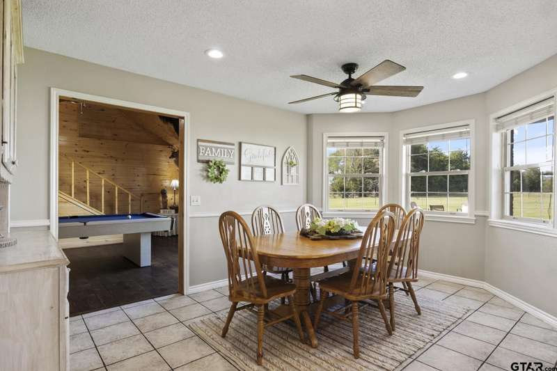 Whether you're looking to escape the hustle and bustle of city life or simply desire a serene environment to raise your family, this property provides that dream. Imagine mornings spent sipping coffee on the porch, enjoying fishing in your pond during the day, and evenings by the fire pit under a starlit sky. Minutes to Lake Cypress and Bob Sandlin. This 2,550 sq ft home rests on 2.12 acres, providing ample space to make it your own. This move-in ready residence features 4 bedrooms and 3 full bathrooms, easily catering to any family's needs and desires. Additionally, there’s a 2,400 sq ft shop complete with an enclosed living quarter and a full bathroom. As you enter, you’ll be welcomed by a spacious family room that boasts a vaulted ceiling, a built-in desk area, and a cozy wood-burning stove set against a brick backdrop. A versatile room is available for a game room, home office, or additional living space. The combined dining and kitchen area offers plenty of room for entertaining family and friends, accompanied by generous pantry storage and laundry connections conveniently located just off the kitchen.Embrace the shop's limitless possibilities -whether you're a passionate hobbyist, a car aficionado, or in need of extra storage for your cherished belongings, this workshop is a dream come true. The enclosed living quarter can serve as a guest retreat or a productive workspace. Also, offers a complete with a kitchenette and a spacious carport for additional equipment storage. Families will appreciate the proximity to excellent schools, making routines easier, while nearby parks offer abundant opportunities for outdoor activities and recreation. The lively local community ensures a variety of dining, shopping, and entertainment options are always within reach. Plus, you’re just moments away from the serene waters of Lake Cypress and Bob Sandlin, perfect for fishing and leisurely pursuits.This home and location are ideal for gathering family and friends.Call today!