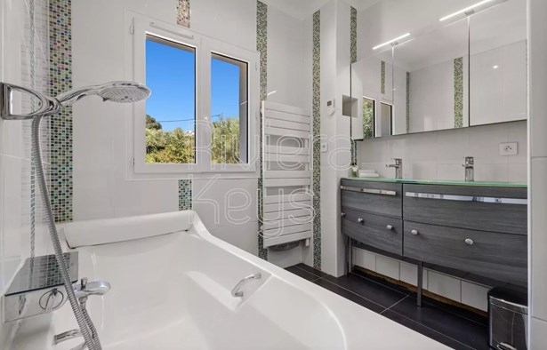 Enjoy the sunshine and tranquillity in this recently built Provençal villa, facing south. Set back from main roads in the sought-after Val Fleuri district of Cagnes-sur-Mer, it is tucked away at the end of a quiet street, close to the sea and restaurants.On the ground floor, a spacious living room with adjoining dining area and open-plan kitchen opens onto an 80 m² terrace, landscaped garden, and a large swimming pool. The 1,200 m² grounds are adorned with exotic plants and trees. There is also a guest WC and a laundry room.A hallway with its own private entrance leads to a studio featuring a shower room with WC, a kitchenette, and a mezzanine bedroom — perfect for hosting family or generating rental income.Upstairs, five bedrooms share a separate WC and a bathroom. The main bedroom has a balcony with sea view.For your convenience, the property offers a large, secure private parking area with space for up to 13 cars.