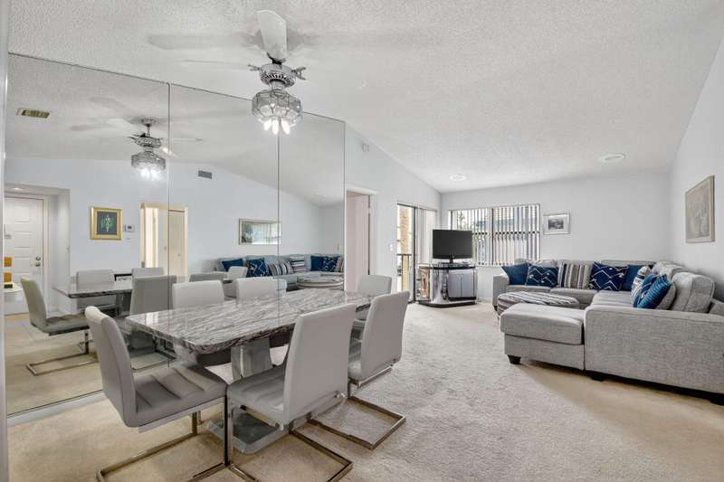 Welcome to this sunny corner condo, fully furnished, conveniently located in this beautiful , active 55+ community with lots of amenities and activities. Close to shopping, dining, FL Turnpike, Wellington Mall, Equestrian , entertainment, sport and cultural events. This spacious 2/2 condo features high ceilings, split bedroom plan for privacy, large walk-closet, bright eat-in kitchen/breakfast area, dining/living area, screened covered patio, full size washer and dryer/utility closet, accordion shutters. The satellite Pool and Clubhouse are minutes from your door!The main Clubhouse features a resort-style pool, fitness room, tennis, bocce, game rooms, clubs/social events, a courtesy bus and much more!Schedule a tour today!***Minimum 750 credit score required by Condo Assoc.