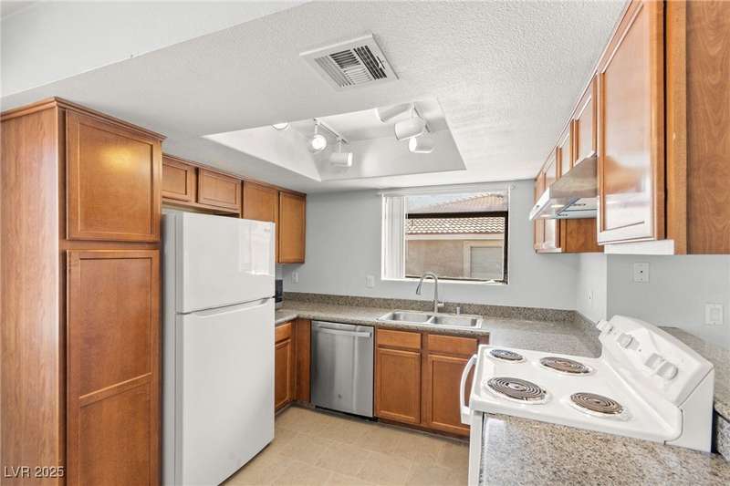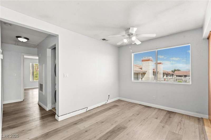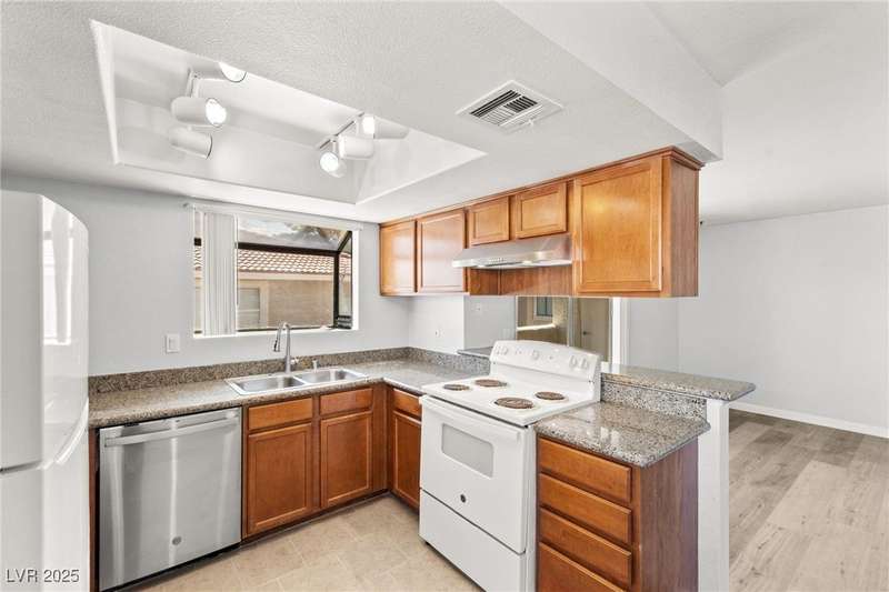 This stylish 2-bedroom, 2-bathroom condo in a desirable Summerlin-adjacent area features an open floor plan with laminate flooring, granite countertops, and a spacious kitchen with a breakfast bar. It includes a balcony, covered porch, and assigned covered parking. The community offers resort-style amenities, including a pool, fitness center, and tennis courts. Its prime location provides easy access to shopping, dining, and major freeways, making it ideal for a low-maintenance lifestyle.