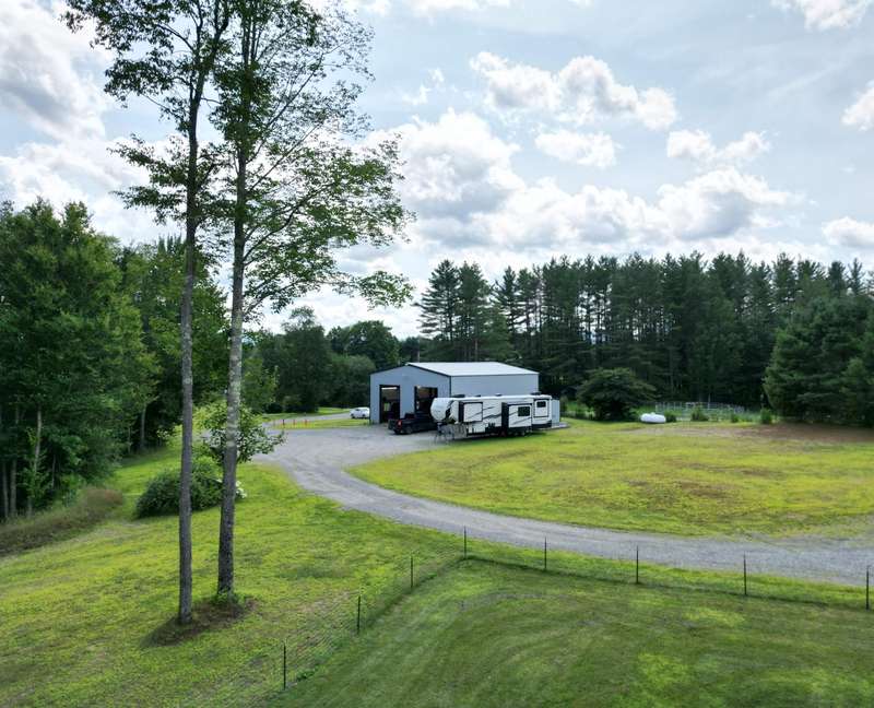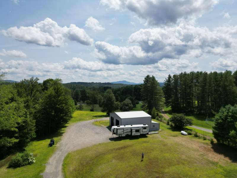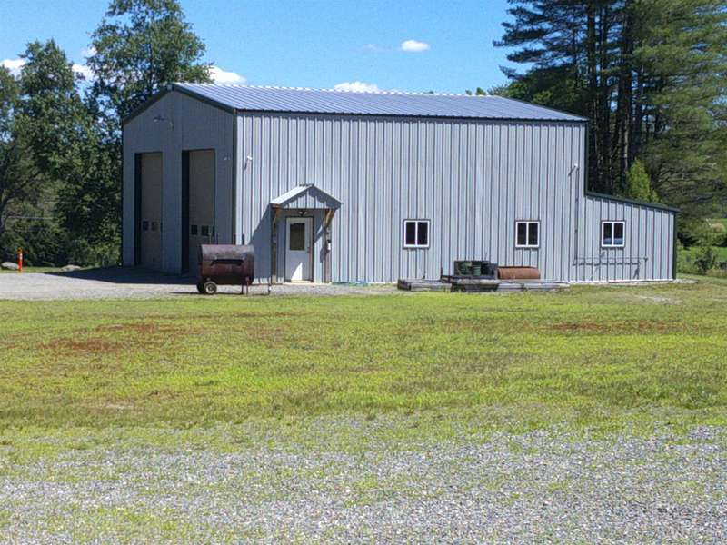 3.2-acre parcel with 1,848 sq' garage/office building built in 2017 and a 3 bedroom 2 bath residential trailer. Mountain views and a tranquil hilltop setting. Property includes an approved and INSTALLED septic system for 420 GPD VT Waste Water Permit WWW-5-5338-1, attached. This is for a 3 bedroom house and is currently connected to the residential trailer. The trailer rests on a prepared 30' x 65' x 3' Staymat pad which can be used for new construction. The land is dry and has been meticulously cleared, graded, and grassed, providing a pristine canvas. A feature of this property is the 7 year old, 1,848 square foot galvanized steel commercial building , including 288 square feet of office space. High tensile, straight steel beams provide an unobstructed interior with maximum floor space and interior volume. Main shop is 44' wide 42' deep. Walls 18' tall with an attached 12' deep 44' wide office and storage space. Over head doors are 12' wide by 14' tal...