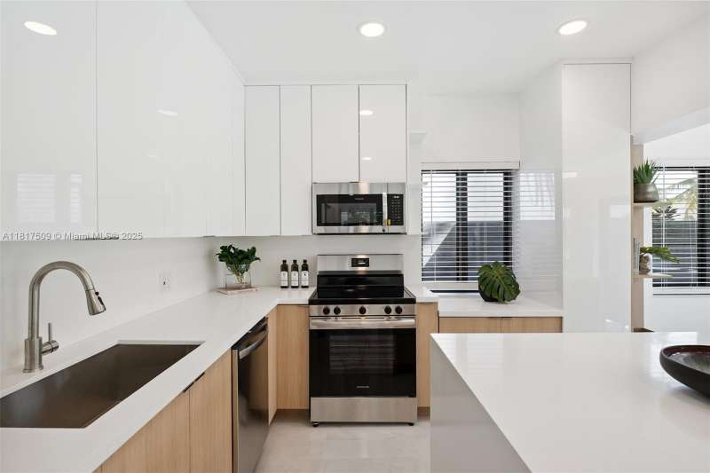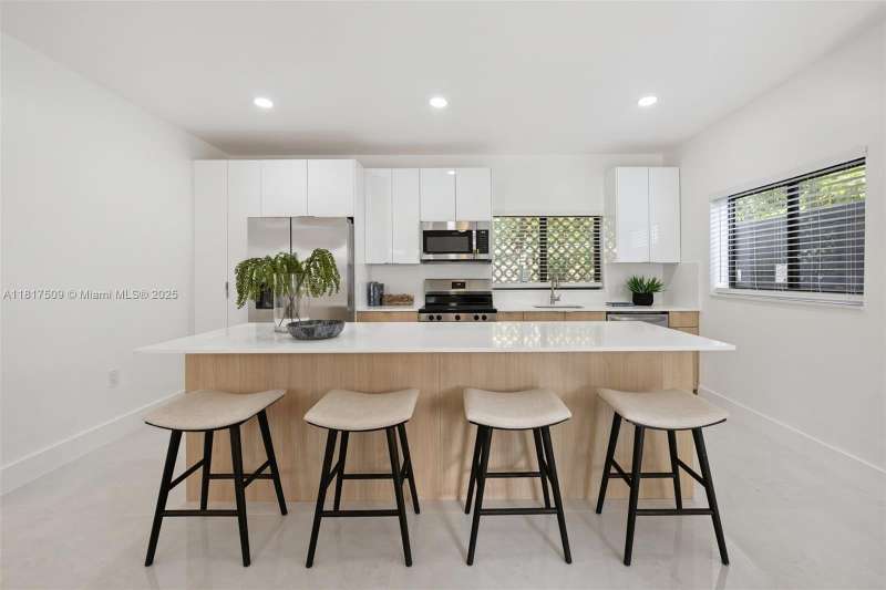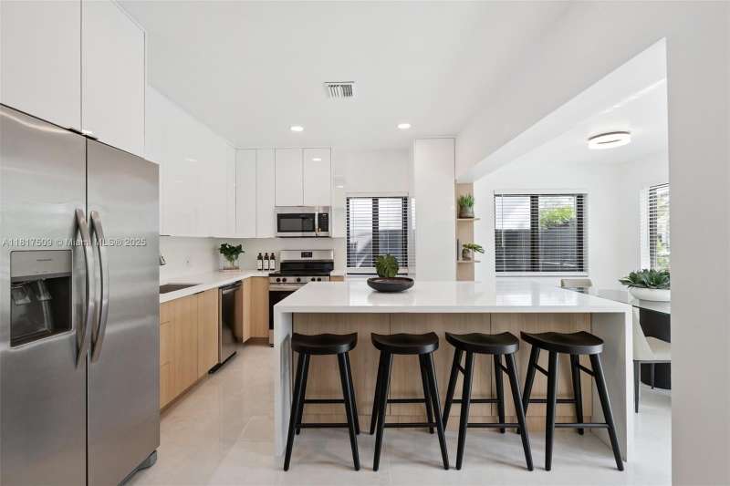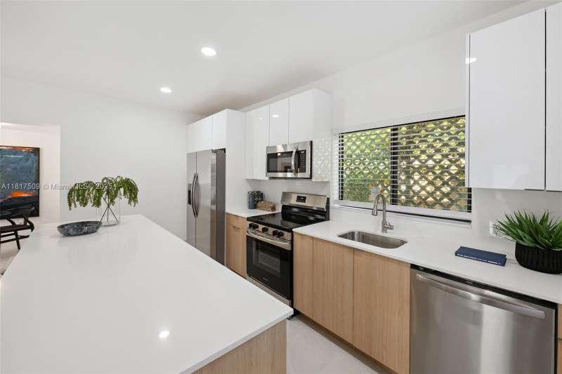 REDUCED. Bring offers. Turnkey renovation in the Roads neighborhood. Bright, modern 3-bedroom, 3-bathroom house with a private 1-bedroom, 1-bathroom guest house—both showcasing all-new impact windows and doors, tile flooring throughout, custom floor-to-ceiling kitchen cabinetry, quartz countertops, oversized kitchen islands with waterfall edges, new stainless steel appliances, custom bathrooms with floor-to-ceiling tile, in-unit washer and dryer, and central A/C. The guest house is connected by a quiet, professionally landscaped courtyard and viewing deck, while the main house also offers a private front deck and garden—perfect for enjoying peaceful mornings and afternoons. Prime location within walking distance to places of worship, A-rated schools, world-class shopping, and entertainment