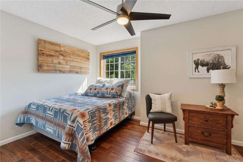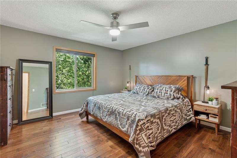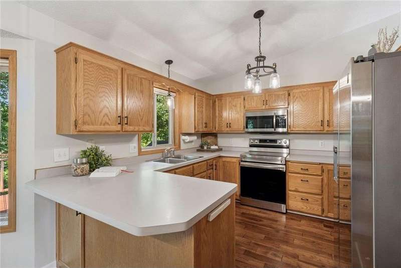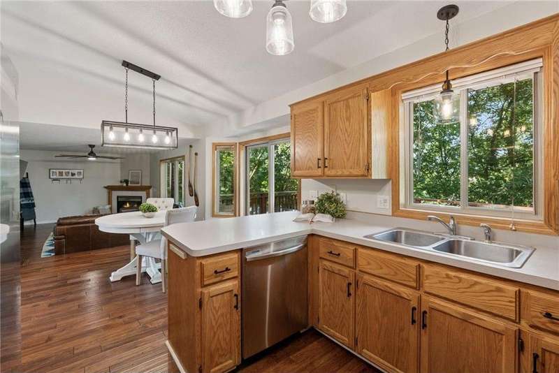 This beautiful, modified two-story home offers the ideal combination of peaceful waterfront living and convenient access to everything Elk River has to offer. Situated on a quiet cul-de-sac, the property provides privacy, natural beauty, and a prime location. From the west-facing deck, take in breathtaking sunset views over the water, or enjoy them from your private dock. Spend warm summer days on the water and transition effortlessly into winter with your own backyard pond hockey setup. Inside, the open floor plan features vaulted ceilings, expansive windows, and abundant natural light. Newly installed hardwood floors flow throughout the home, complemented by a new roof, gutters, water heater, and complete HVAC system for peace of mind and year-round comfort. The finished walk-out lower level offers a spacious recreation room and a fourth bedroom, currently being used as a home gym, opening directly to the backyard oasis. The newly constructed storage shed accommodates all of your seasonal and outdoor gear and includes French drains for proper drainage. This home has it all!