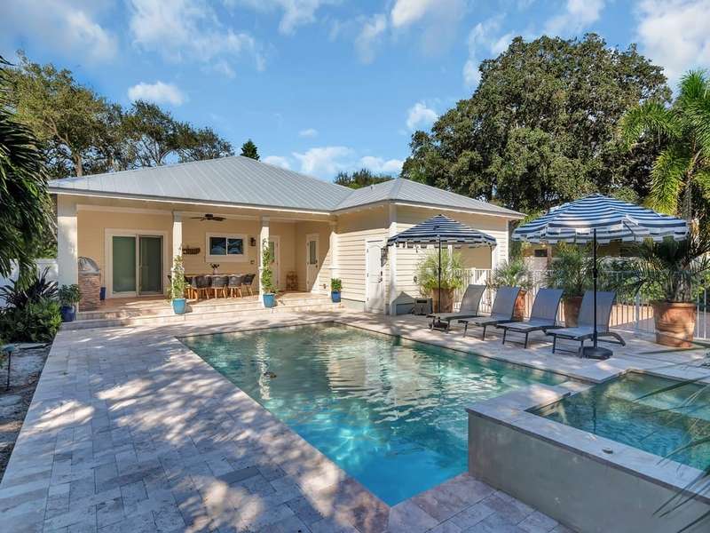 This Central Beach rental is like stepping into an island oasis. Beautifully furnished. 4bd/3.5 Bath home with mother in law suite, Summer kitchen, and outdoor dining. The back yard is EVERYTHING you could want to enjoy the weather while swimming in the heated pool/spa or relaxing with a book on the chaise lounges. The fenced backyard is just what your canine kids need to enjoy the Florida sun. Easy to Show! Room sizes are approx. and subject to error. Property and contents represented in photos is subject to change.