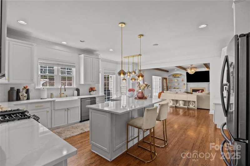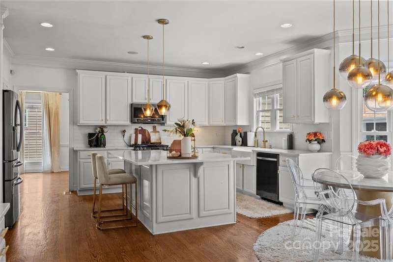This home has it all--magazine quality inside and outside. Large, beautiful home with an outdoor oasis. Private backyard entertainment area with exterior kitchen. Open bright floorplan with main level bedroom, office, gameroom, and sunroom! Gorgeous primary suite with room-sized walk-in closet and storage. Spacious secondary bedrooms and huge walk-in closets. The third-floor guest penthouse has a bedroom, an ensuite, a full bath, and a large bonus room. Great for playroom, exercise, and gaming. A small 8th bedroom could be a private study. Newly remodeled kitchen with quartz countertops, stainless steel appliances, and a sunny breakfast nook. Custom mouldings in the great room and formal dining room ceiling. Walk to the pool with waterslide, clubhouse, park, disc golf, and game courts. Within five minutes, restaurants, grocery and retail stores, and medical offices.