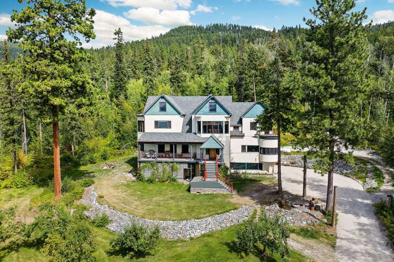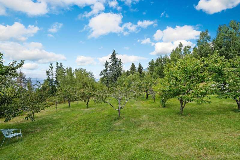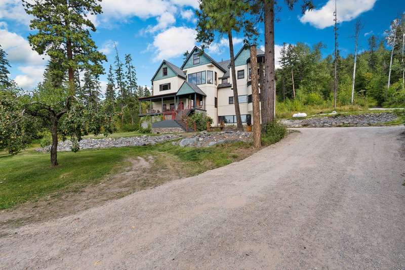 Perched on 20 acres overlooking Flathead Lake, this exceptional estate offers an unparalleled living experience, combining rustic charm with quiet serenity. The main residence, spanning over 7,300sf, features a stunning multi-level design that capitalizes on the property's dramatic setting, perfectly framing breathtaking lake and sunset views. Adding to its charm, the original homestead provides a secluded retreat for visitors or a caretaker, while a flourishing orchard with over 60 fruit trees enhances the dynamic appeal. A tranquil creek winds its way through the land, flowing into a pond stocked with trout-an idyllic spot for fly fishing or quiet reflection. The upper bench offers the perfect spot to build an additional home or guest retreat, enhancing the already impressive potential of this offering. Bordering US Forest Service land that provides limitless opportunities for adventure just beyond your doorstep. This is more than a home; it's a rare legacy awaiting its next steward. With its commanding size and versatile layout, the main residence consists of 8 bedrooms and 8 bathrooms with 3 of the bedrooms offering on suite baths. The home includes a tuck-under garage and more than 2,000 additional square feet of shop and storage space, complete with three-phase power-perfect for any hobby or project. The charming homestead, built in 1932 features 3 bedrooms and 2 baths within 1,900 square feet of living space, along with a detached garage and shed. Practical amenities abound, including full RV hookups and a chicken coop. The upper three quarters of the property is forested with timber and features a roughed in trail for access and exploration, leading to a dramatic rock cliff at its highest edge-adding a wild, beautiful element to the estate. Located only minutes away from the artisanal village of Bigfork and within an hour drive of Glacier National Park & Whitefish Mountain Resort.