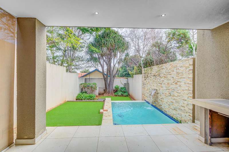 Elegant 2-Bedroom Townhouse with Private Pool in Exclusive Parkmore Enclave with full solar. All offers will be reviewed. Set in one of Parkmore?ÇÖs most desirable boomed-off areas, this beautifully finished 2-bedroom, 2.5-bathroom townhouse offers a sophisticated lifestyle in a secure and serene setting. Designed for modern living, the open-plan lounge and dining area seamlessly connect to a sleek, contemporary kitchen featuring a gas hob, ample cupboard space, and a breakfast counter. Large sliding doors open onto a covered patio that overlooks a pristine private pool and features a built-in gas braai ?Çö ideal for stylish outdoor entertaining. The home is fully equipped with solar power and backup batteries, ensuring uninterrupted comfort, along with a separate storeroom for added convenience. Flooded with natural light and showcasing quality finishes throughout, this home strikes the perfect balance between comfort and elegance. Enjoy 24-hour manned security, a dedicated guardhouse, and controlled access within a quiet, access-controlled enclave. Ideally located near top schools, Sandton CBD, and local amenities, this is secure, upmarket living at its best.