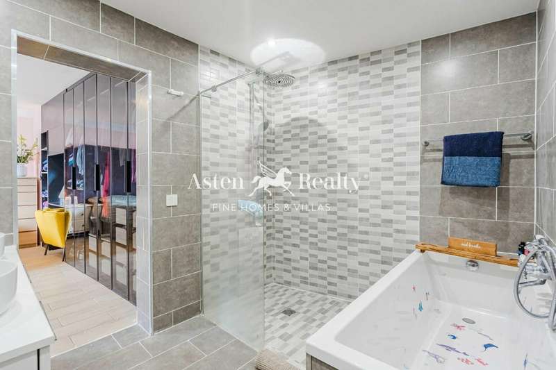 On the lower level, you’ll find a self-contained apartment featuring a fully equipped kitchen, a bathroom, two bedrooms, and a terrace – an ideal space for guests or rental opportunities.