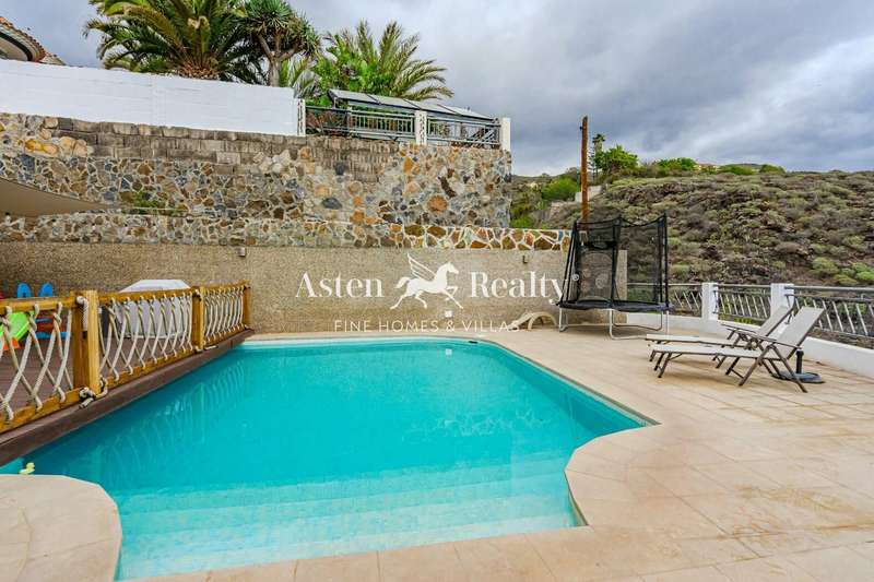 Nestled in the quite area of Los Menores, Adeje, this exquisite two-level townhouse offers 4 bedrooms, 3 bathrooms, breathtaking ocean view, a private pool, and a perfect blend of comfort and elegance.