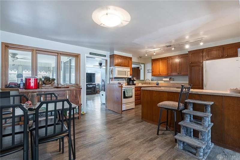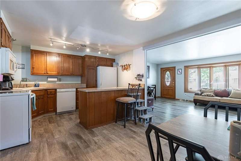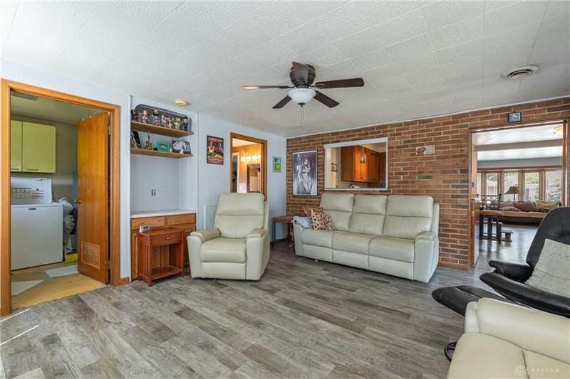 Here's your chance to own a larger than standard Huber for a great price! Located near schools, shopping, and golf courses. Entering the double driveway, you'll notice the newer garage door! You'll love the custom wood front window with a great view, not to mention wood windows throughout. The living room is adjacent to the newer kitchen with built-in bar and classy wood cabinets. The gray vinyl floors are astounding in the family room addition. All three bedrooms are easily accessible from the living room hallway. Another plus is the large laundry room. Last but not least, you'll enjoy the 3-season room with crank out windows next to the huge concrete patio. This home is a "can't miss"!