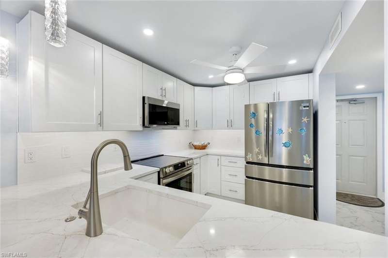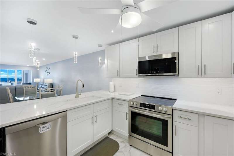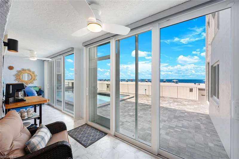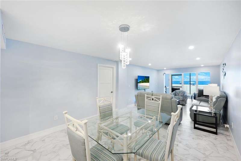 BEACHFRONT!! Welcome to your dream coastal getaway in the heart of Bonita Springs, FL. This beautifully renovated 2-bedroom, 2-bathroom condo offers an unbeatable beachfront location with breathtaking views of the Gulf of Mexico from both the main living area and the primary bedroom. The open-concept layout creates a bright, airy feel, with the living area expanded to include the balcony perfect for enjoying the ocean breeze and stunning sunsets. The fully equipped kitchen features newer stainless steel appliances and elegant quartz countertops, making meal prep a breeze whether you're cooking a quick breakfast or entertaining guests. Off the pool deck, you'll soon have access to a completely renovated community room a great space for socializing, watching movies or sports, or hosting small gatherings. It features two bathrooms, a mini kitchen, and multiple seating areas. Step outside and you're just moments from the white sandy beach, where you can soak up the sun, spot dolphins pla