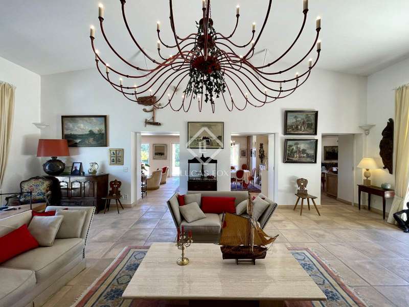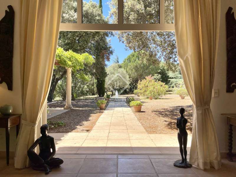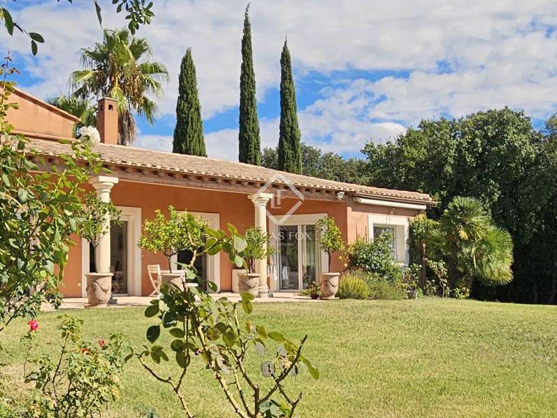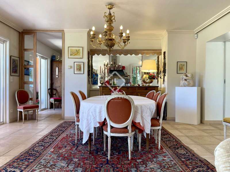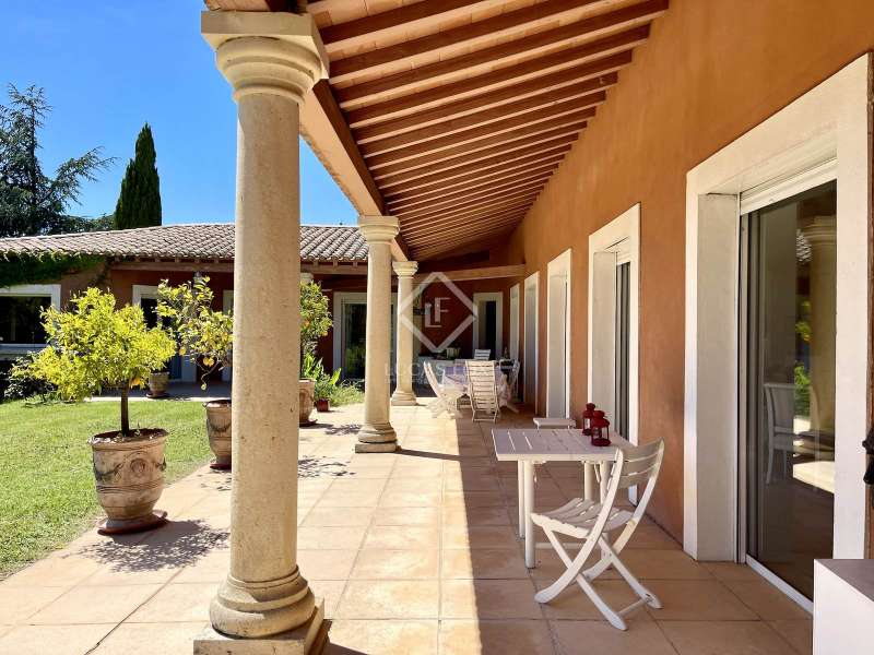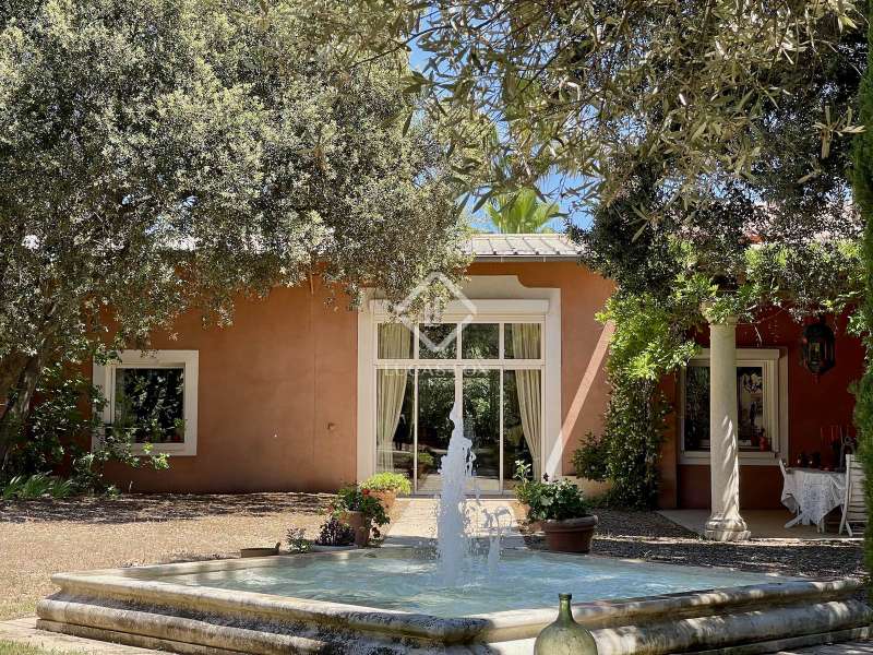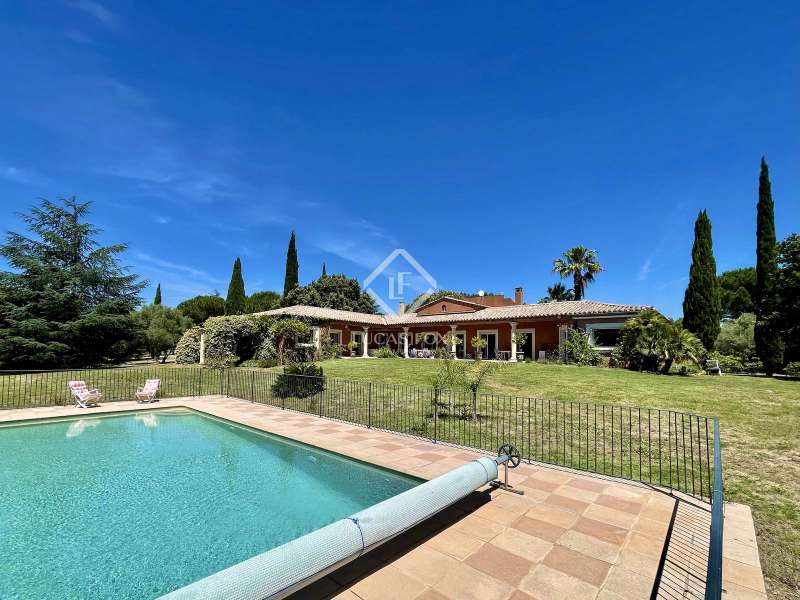Lucas Fox International Properties, 15 minutes from Montpellier and overlooking a calm and preserved environment, unique property with views stretching to the sea. On a plot of 4.8 ha, large house entirely on one level composed of several living rooms, a master wing and a reception wing. The terraces extend the interior by approximately 150 m² and the garden leads to various relaxation and leisure areas: heated infinity pool (5 m x 11 m), equestrian box with clearing, vegetable garden, promenade, vines... Inside, the house offers 150 m² of spacious and bright living spaces: an entrance hall, a reception room with a wood-burning stove, an office, a dining room, an eat-in kitchen, and a utility room. The various rooms open onto the terraces and the garden. On one side of the house is a master suite with a dressing room, a bathroom, and a shower room with WC. On the other side, the reception wing includes a suite with its own shower room, two bedrooms with fitted wardrobes, a bathroom, and a separate WC. All bedrooms enjoy remarkable panoramic views and open through sliding doors onto the covered terrace. The property also has two additional bedrooms with large fitted wardrobes and a shared bathroom. The 300 m² of outbuildings offer multiple possibilities: mazet, large closed garage/shed for 4 vehicles, workshop, lean-to, storage room, covered garage for 8 vehicles, wine cellar... The property has significant assets: drilling, sliding bay windows throughout the property, electric roller shutters, geothermal heating, solar panels, 2 fountains, automatic watering, exterior lighting, secure automatic gate, alarm and remote surveillance system. Possibility of acquiring additional plots of vines (AOC Saint Georges d'Orques). Get the complete file and more information from your dedicated agent, Elodie SALA Commercial Agent - RSAC n° 899 543 151 Montpellier. Information on the risks to which this property is exposed is available on the Géorisques website: www.georisques.gouv.fr.