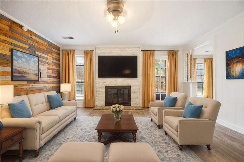 Fall in love with this recently painted, move-in ready Bartlett beauty. This charming 1-story, 3-bdrm, 2.5-bath home features new flooring, a stunning glass mosaic backsplash, and stainless-steel appliances. The spacious, open layout includes a combined formal living/dining room. Entertain family & friends in the cozy den with fireplace. The kitchen offers ample counter space, modern updates, and connects seamlessly to the main living areas for easy flow and function. All bdrms are conveniently located on one side of the home. Step outside to a private fenced backyard featuring a 20x15 exterior-access multipurpose room?ideal for a music studio, home office, or influencer/content-creation space. The backyard is perfect for gatherings, gardening, or simply enjoying quiet moments. Located in a sought-after neighborhood near parks, shopping, dining and schools. creativity, and convenience all in one. Come see why this home is the perfect place to live, play and create!