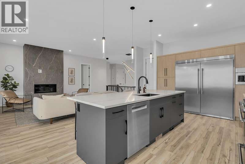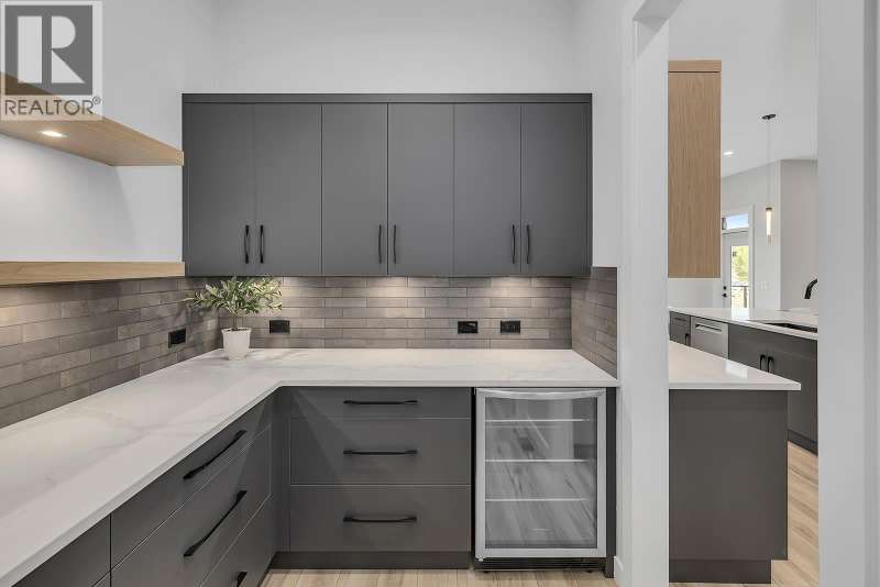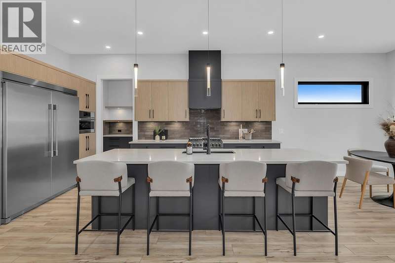 Welcome to this stunningly crafted new home with sweeping infinity valley VIEWS, a TRIPLE CAR GARAGE, a 2 BDRM legal suite and room for a pool on a large 0.27 acre lot, this home offers a combination of features you won’t find elsewhere! This rancher walkout is perched with no homes in front of you on one of the best streets in the area within the serene setting of Black Mountain, one of Kelowna’s top rated high-end neighbourhoods offering captivating Okanagan Valley views, proximity to prestigious golfing, great schools, nearby hiking trails and only minutes to your favourite amenities. Graced with sophisticated designer finishings and impeccable craftsmanship throughout, this expansive layout boasts a gourmet kitchen with a deluxe luxury fridge, gas range, accessory butlers pantry with beverage fridge & maximized cabinetry. Large windows fills the home with bright natural light and the covered deck & sundeck is the perfect space to enjoy, entertain & unwind! The primary bedroom on the main floor is a masterpiece with a spacious ensuite and walk-in closet. Sleek design and elegance carries through to your walk-out basement featuring 2 more bdrms & UPGRADED SUSPENDED SLAB room for your POTENTIAL THEATRE ROOM OR GYM. The 2 bdrm suite offers flexibility for extra income or a space for live-in family. The large yard leaves ample room for green space or to drop in a POOL. This home is a MUST SEE with thoughtfully architectural design and luxurious finishings (price + gst) (id:58403)