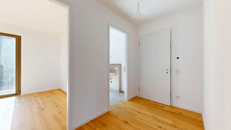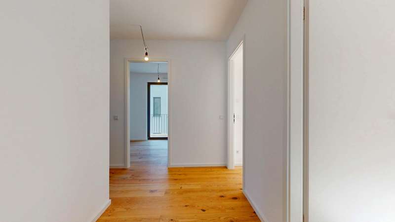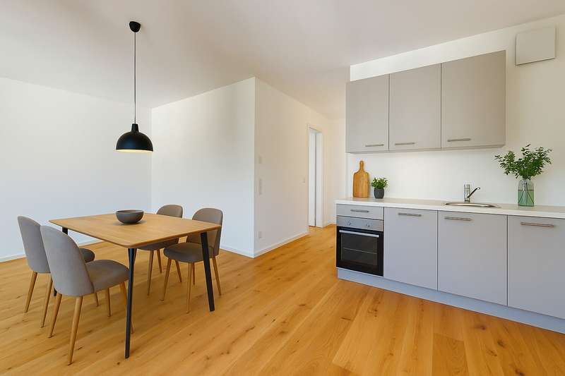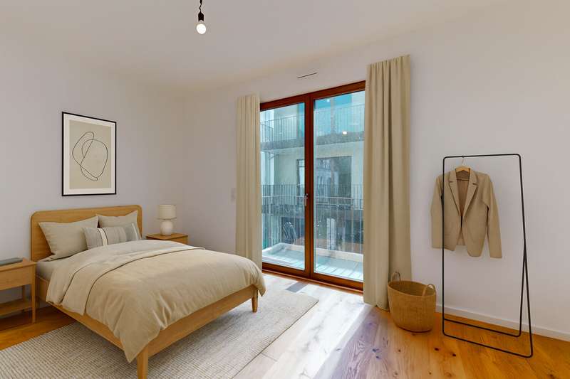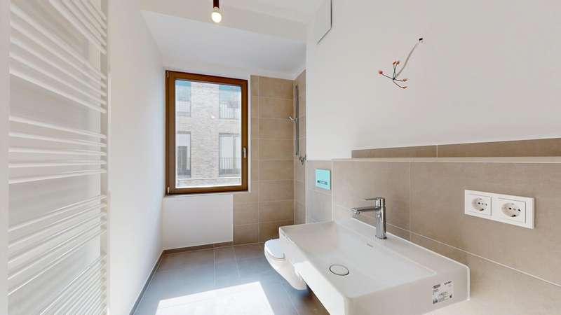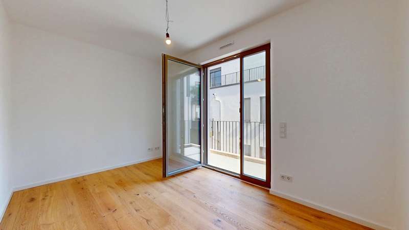 This high-quality new-build apartment on the second floor combines modern living with well thought-out spatial planning and first-class living comfort. It is located in an architecturally appealing ensemble in a quiet, mature location in Alt-Eschersheim and offers you the special advantage of first-time occupancy. Access to the apartment on the second floor is via a lovingly designed front garden as well as via the staircase or the stepless elevator, which underline the comfortable character of the building. Upon entering, you are greeted by an elegant entrance area that flows seamlessly into the spacious living and dining area with open-plan kitchen. Large, floor-to-ceiling windows flood all rooms with natural light and create a bright, friendly living atmosphere. Fine oak parquet flooring underlines the stylish ambience, while high-quality porcelain stoneware tiles and exclusive sanitaryware in the daylight bathroom convey timeless elegance. Two bedrooms are available. A special highlight: the apartment has two balconies and a loggia with a wonderful view of the Nidda. The views of the historic neighboring buildings lend a special touch of charm and tradition to the living experience. This apartment is ideal for discerning singles, couples, small families or senior citizens who value quality, tranquillity and a stylish environment - without having to sacrifice proximity to Frankfurt city center.