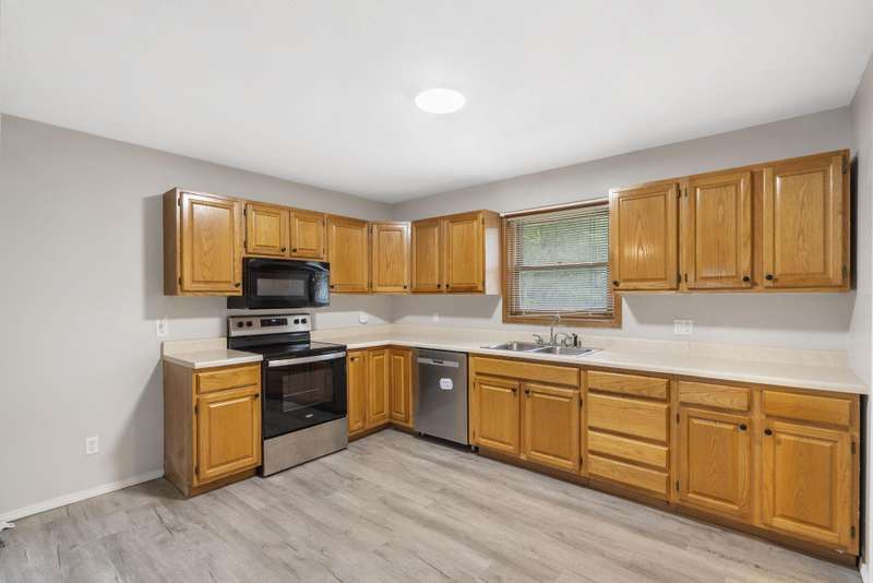 Welcome to this charming 2 bedroom, 1 bathroom home tucked away on a quiet dead-end street in Crane, MO! Step inside to find an inviting layout with LVP flooring throughout. The kitchen is a highlight, with brand-new appliances and the open living room has ample space to host guests for Sunday football games.Enjoy the morning sunrise on the covered front porch. With its peaceful setting, convenient updates, and cozy feel, this home is ideal wether you're just starting out, downsizing or looking for an investment property. Don't miss the chance to make it yours!