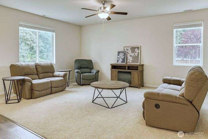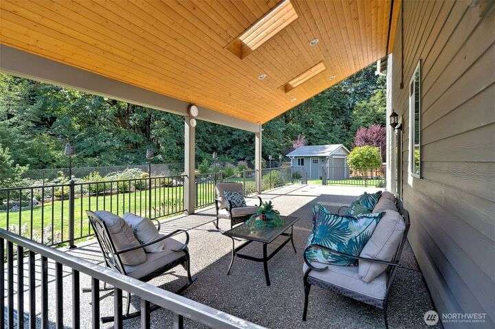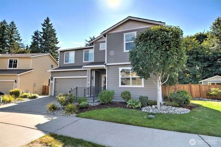 Immaculate 2,648 sq. ft. home in the Munn Lake neighborhood of Tumwater. 5 bd/3ba, .26 acre corner lot. Open floor plan w/raised ceilings that flow right into a huge kitchen w/quartz countertops, stainless steel appliances & a double custom walk-in pantry. Large master suite & additional living area upstairs. Outside, enjoy a raised, 550+ sqft covered patio w/exposed aggregate. Perfect for BBQs, entertaining & relaxing. Fully fenced yard w/ the most perfect PNW landscaping backing up to the HOA greenbelt for extra privacy. Other features include a large outbuilding/garden shed w/ a roll-up electric door, raised container garden, heat pump, installed generator system, & a fully finished 2-car garage. Tumwater School District. Easy commute.