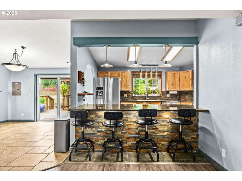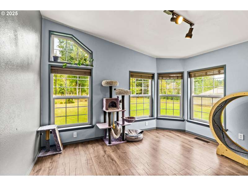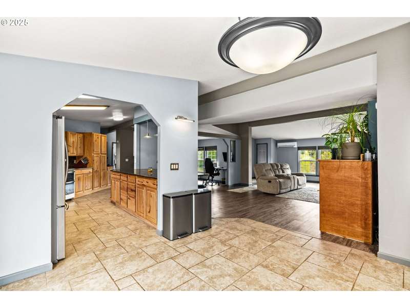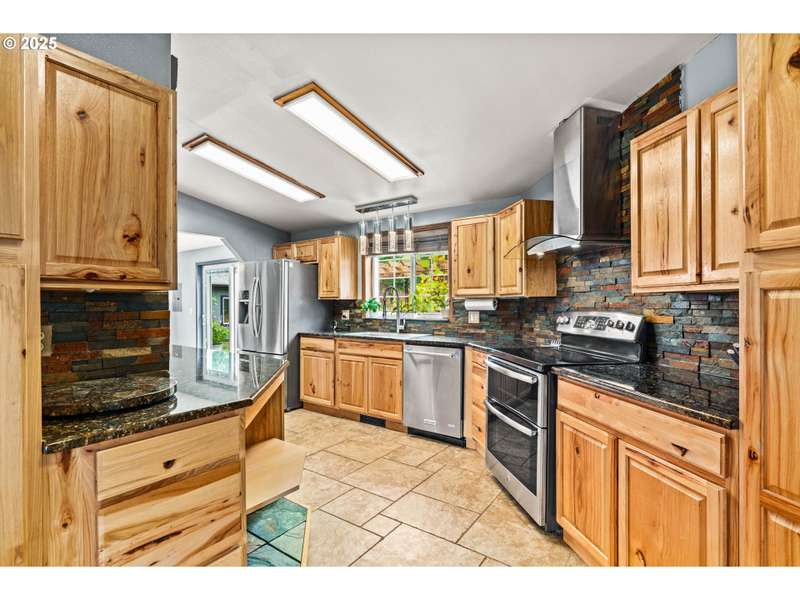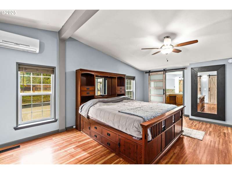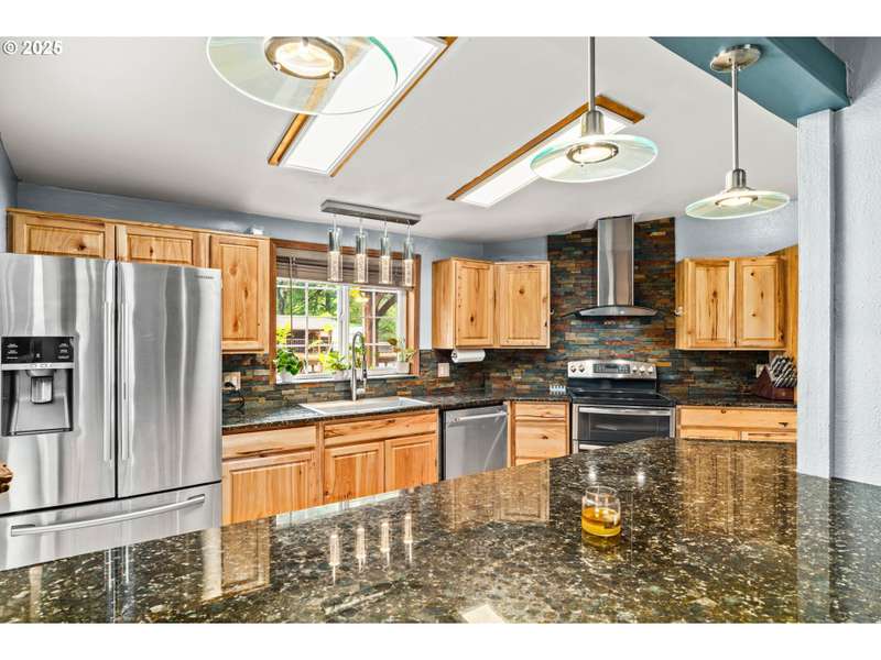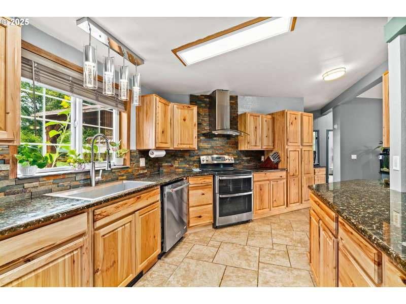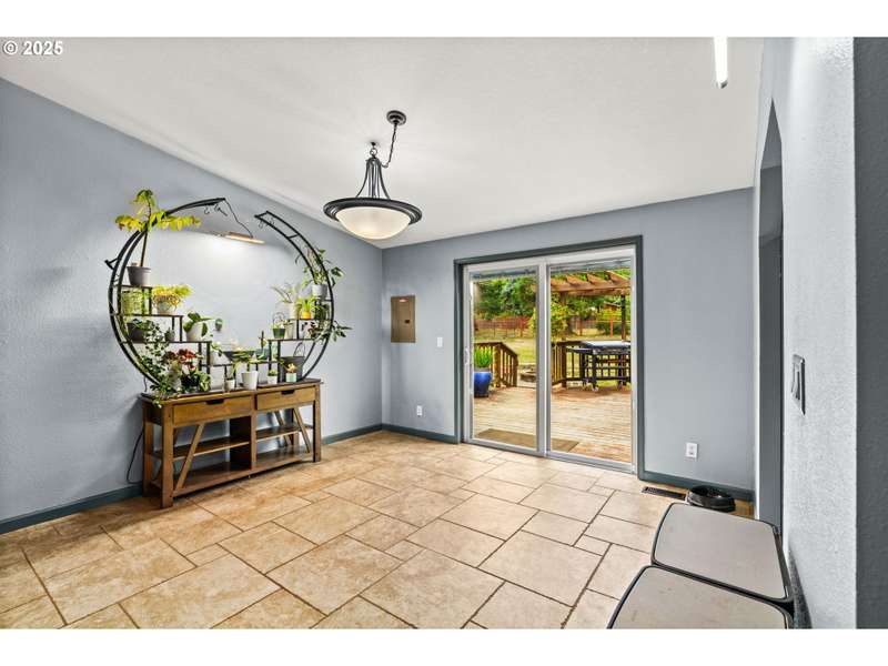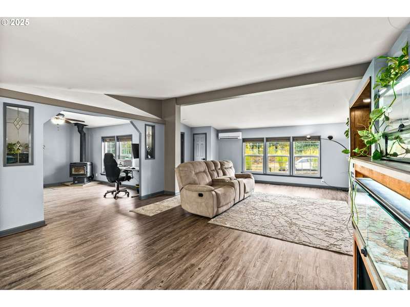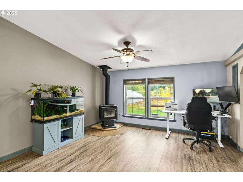 Country property only 10-15 minutes from the town of Springfield, this fully fenced 5-acre property offers privacy, space, and endless possibilities—perfect for a hobby farm! The acreage is well-maintained, providing a beautiful and functional setting for all your outdoor needs. The 2,199sqft., 3 bedroom 2 bath manufactured home is beautifully updated with a kitchen featuring granite countertops, an eat bar, stainless steel appliances, and led panels that fill the space with natural light. The open great room is bright and welcoming, and the large primary suite includes a roomy, well-designed bath, with a large tile walk-in shower and double sinks with lots of counter space. Cozy up with the wood stove in the office space., enjoy an automatic gate, a detached garage with separate living space, a covered carport, multiple outbuildings including greenhouses 8'x12' and the larger greenhouse 30'x60' and a shop, a deck, and a year-round creek. Enhance your home’s energy independence and resilience with an owned, grid-tied solar system featuring battery backup for seamless power to essential loads during outages, included in the sale for immediate eco-friendly savings. This property blends comfort, functionality, and tranquility in a truly peaceful setting.