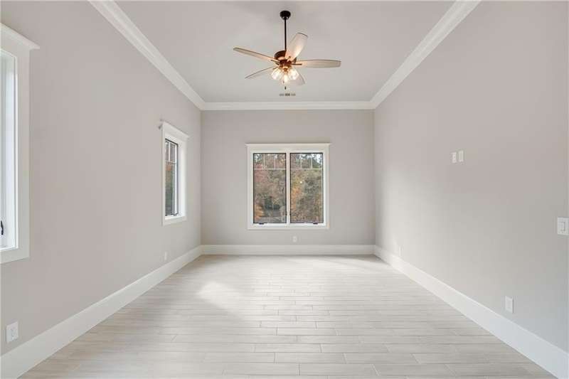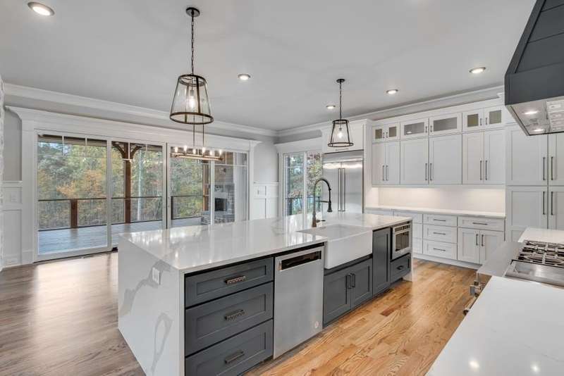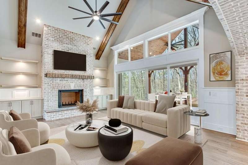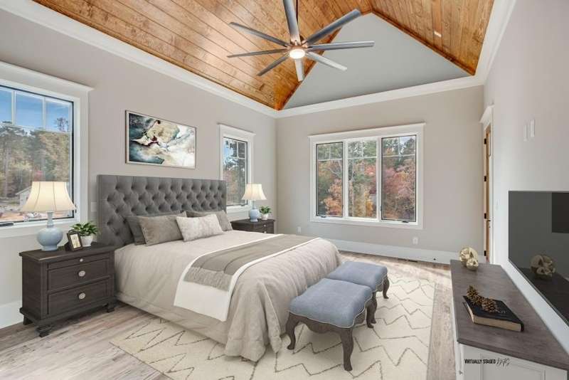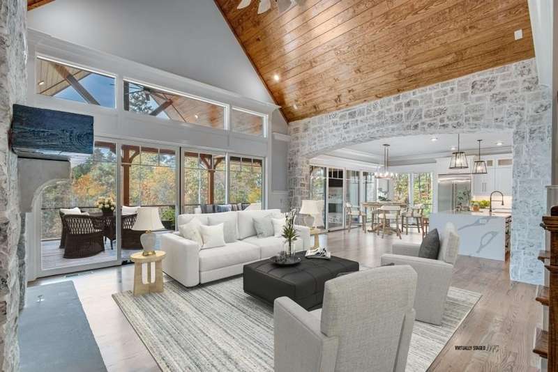 Welcome to new luxury lakefront construction in sought-after Cumberland on Lanier! Currently in build stage, drywall in process. Photos on this listing are of two similar plans with like finishes already built and sold on Lake Laner by this builder. This stunning modern transitional home is being built on a rare gentle double lot with 1.18 acres and 250 feet of shoreline, complete with a new Marine Specialties all aluminum maintenance free private double-slip party dock in a quiet no-wake cove. Located in one of Gainesville's most desirable Lake Lanier luxury communities, Cumberland on Lanier offers resort-style amenities including a sparkling pool, clubhouse, playground, two pickleball courts, and private gated access for peace and security. The lot is ideal for a future pool. You'll love the location-just minutes to Gainesville or Cumming, with easy access to Atlanta, top restaurants, and the lake's best marinas. Designed for lake life, this "elevator-ready" home features an open floor plan with 1,593 square feet of covered outdoor living and 384 square feet of open deck, a 4-car garage, and lake views through multi-paneled sliding doors. The exterior blends timeless style and low-maintenance materials including Pella windows, natural stone, cement siding, and stained wood accents. A vaulted screened porch with stone fireplace invites you to relax or entertain with a perfect view of the lake. Inside, the main level showcases a custom kitchen with waterfall-edge quartz island, designer cabinetry, wet bar, dining area, and grilling porch. The family room features a stone fireplace with floating shelves/built-ins and tongue-and-groove ceiling detail. The main-level primary suite includes a lighted vaulted tongue and groove ceiling, two spacious walk-in closets, one larger with built-in island, and private access to the screened porch. The spa-like bath offers heated tile floors, a free-standing tub, and a separate shower. A second ensuite bedroom or office with full bath, plus laundry and mudroom, complete the main floor. Upstairs, you'll find three ensuites with walk-in closets, one is a primary suite size with vaulted beamed ceiling, PLUS a finished bonus room, and a total of full baths plus second laundry hookup. The unfinished terrace level features 12' ceilings and 2,400+/- sq ft for a future living area with a wet bar, guest suite, bath, bunk room, gym, or wine cellar, and stubbed for two bathrooms. Enjoy a double door in the terrace level access for a golf cart, the easy walk or golf cart ride to your dock, or launch a kayak, paddleboard, or fishing line right from your 100 feet of rip rap shoreline. Built by trusted local builder ProStar Ventures, this home includes thoughtful upgrades like an irrigation system, and whole house hot water recirculating system. Photos shown are of similar floor plans recently completed by ProStar Ventures.