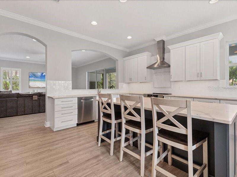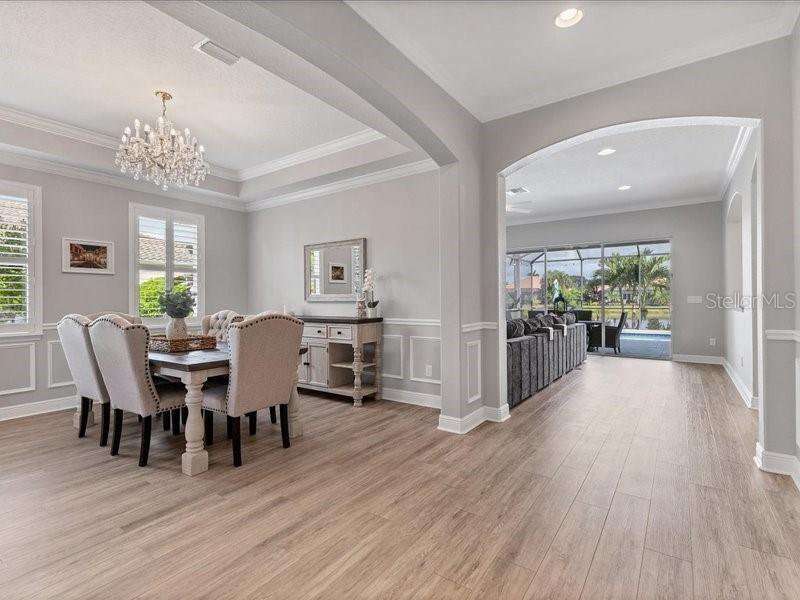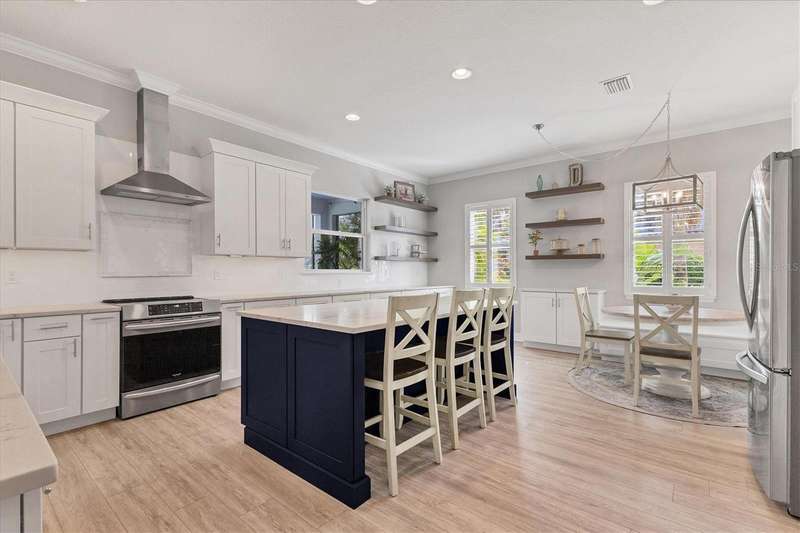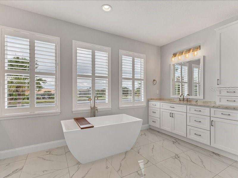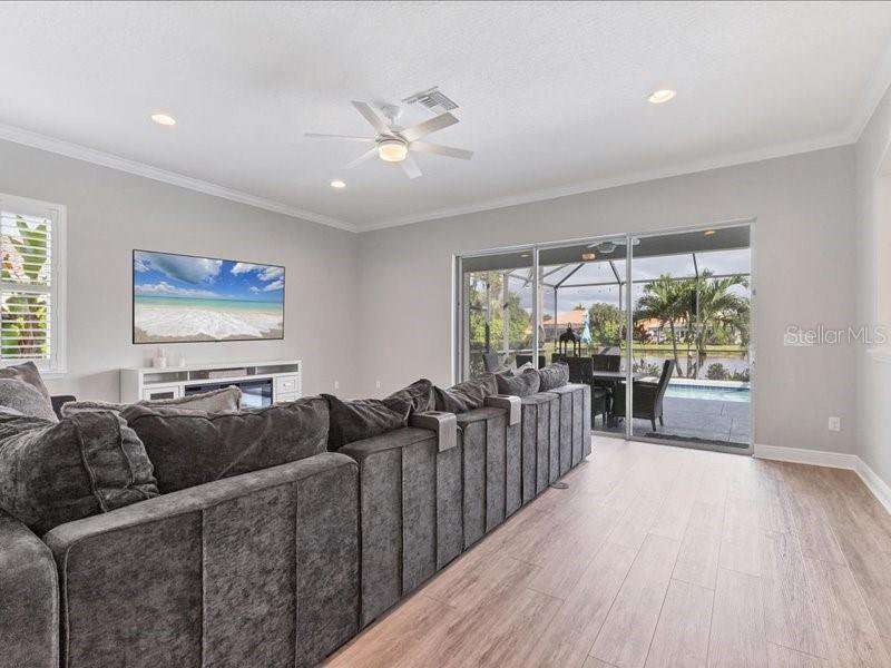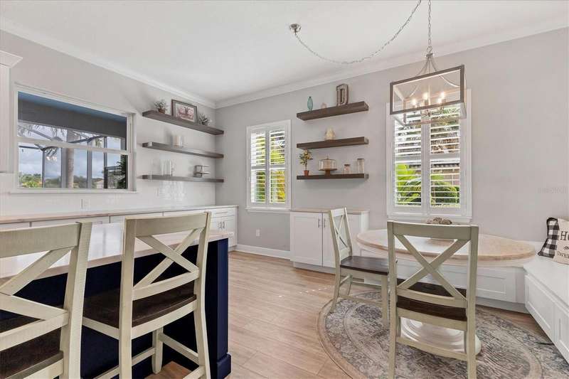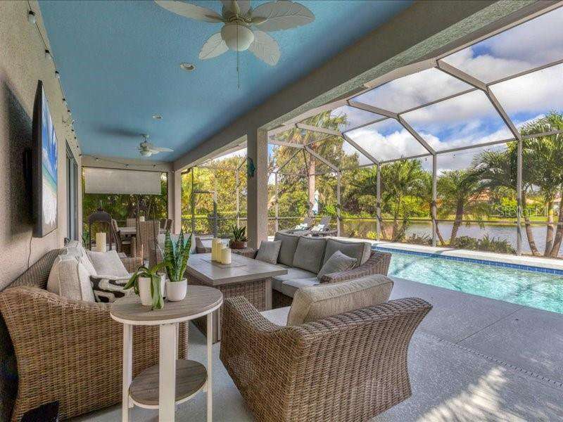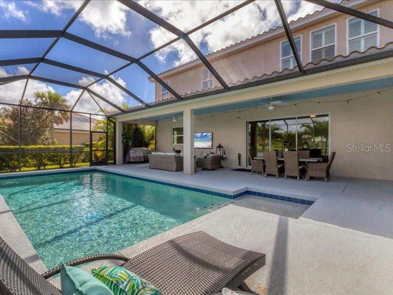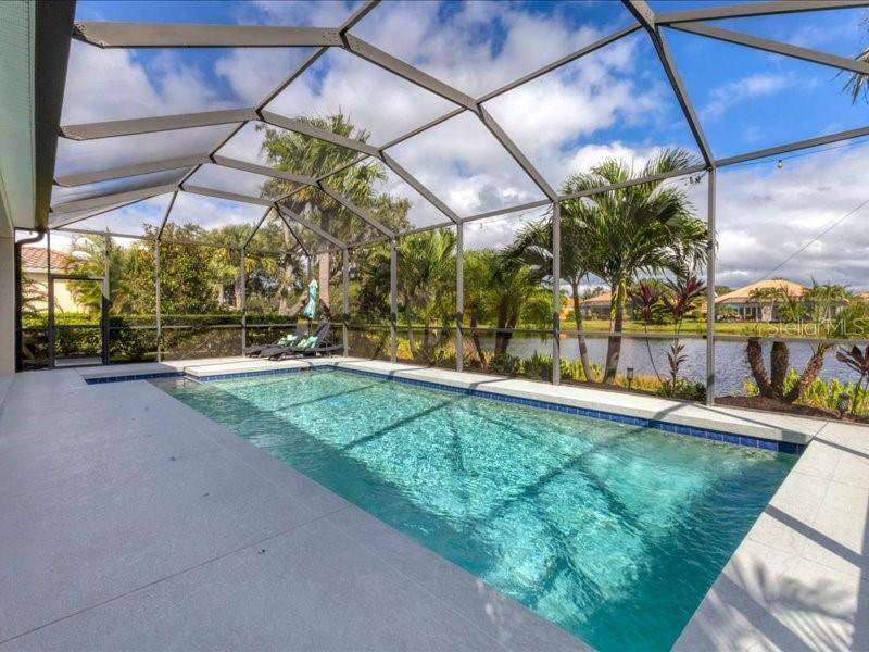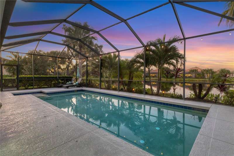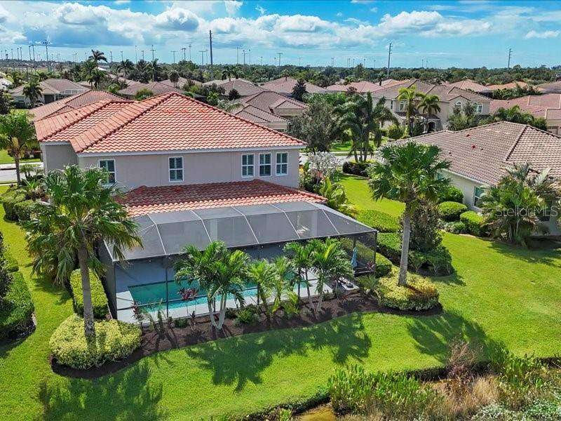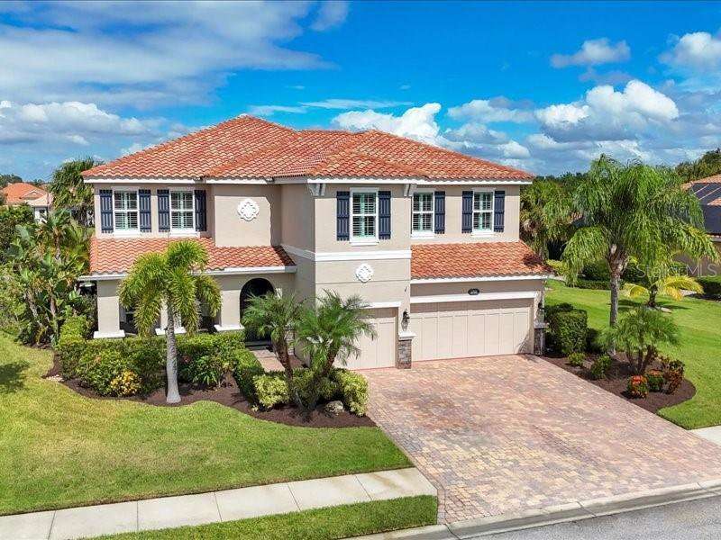 Under contract-accepting backup offers. One or more photo(s) has been virtually staged. Exquisite 4,310 sq. ft. lakefront residence, built in 2014 and completely renovated in 2022, offering luxury and comfort within the gated community of Redhawk Reserve. Designed with five spacious bedrooms, four-and-a-half baths, a heated saltwater pool, three-car garage, and classic brick paver driveway. This home is positioned perfectly on a premium waterfront lot. Step inside to soaring 21-foot ceilings and an open, airy layout accented by neutral designer tones, crown molding, custom woodwork, and plantation shutters, blending timeless elegance with modern style. The first floor showcases a thoughtful layout with formal living and dining areas, a guest en-suite, powder bath, laundry room, and ample storage. The gourmet kitchen features Quartz countertops, stainless-steel appliances, a seven-foot island, induction cooktop, stainless-steel range hood, coffee/wine bar, and built-in banquette seating. Abundant cabinetry and workspace make this kitchen both stylish and functional. The family room flows seamlessly to a screened lanai with heated saltwater pool, lush tropical landscaping, and tranquil lake views. The covered outdoor area offers dual ceiling fans and generous space for dining, seating, and lounging. Upstairs, the primary suite serves as a private retreat with two custom walk-in closets and a spa-inspired bath featuring split vanities, a makeup area with marble countertops, freestanding soaking tub, and large walk-in shower. The loft area provides flexible space for a media or game room, while three additional bedrooms, including two en-suites with built-in closets, offer comfort and privacy. The extra-deep three-car garage includes epoxy flooring and overhead storage. A six-zone irrigation system, fed by recycled water, maintains the lush landscaping. Hurricane shutters, a reinforced front door, and a child-safe pool barrier add peace of mind. The home also includes a whole home Culligan water system with softener. Redhawk Reserve features a gated entrance, sidewalks, and scenic lakes. Award-winning Siesta Key Beach and UTC Town Center are only a short drive away. * Top rated school district* This home combines luxury and convenience in one of Sarasota's most desirable communities. Be sure to experience the 3D-Matterport virtual walkthrough. Don't miss this opportunity! Schedule your private showing today!