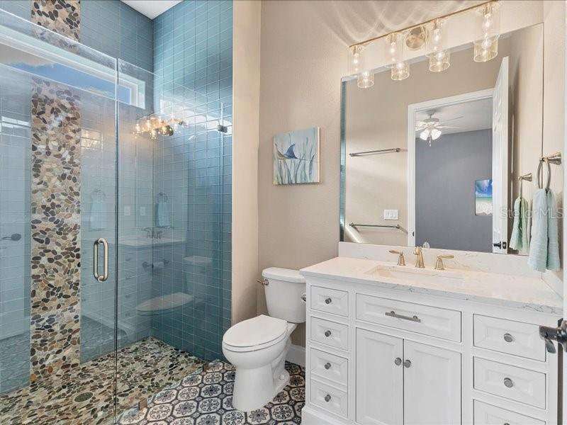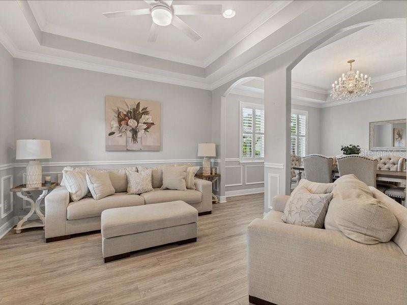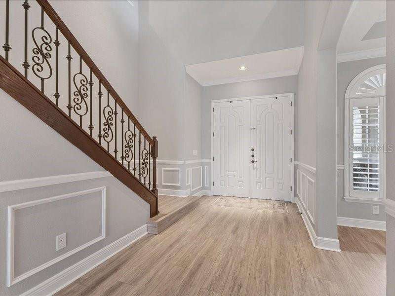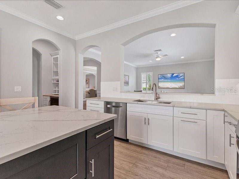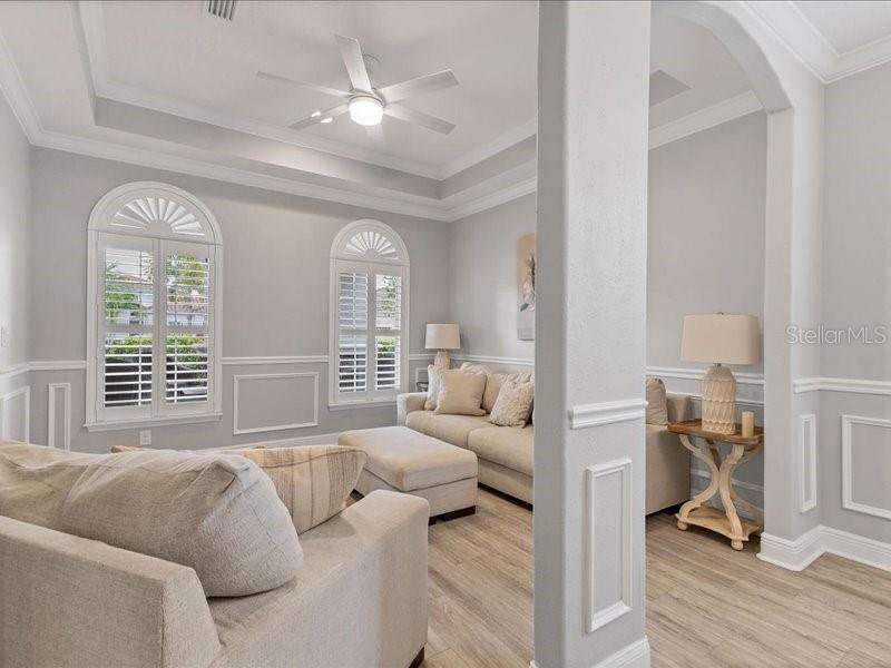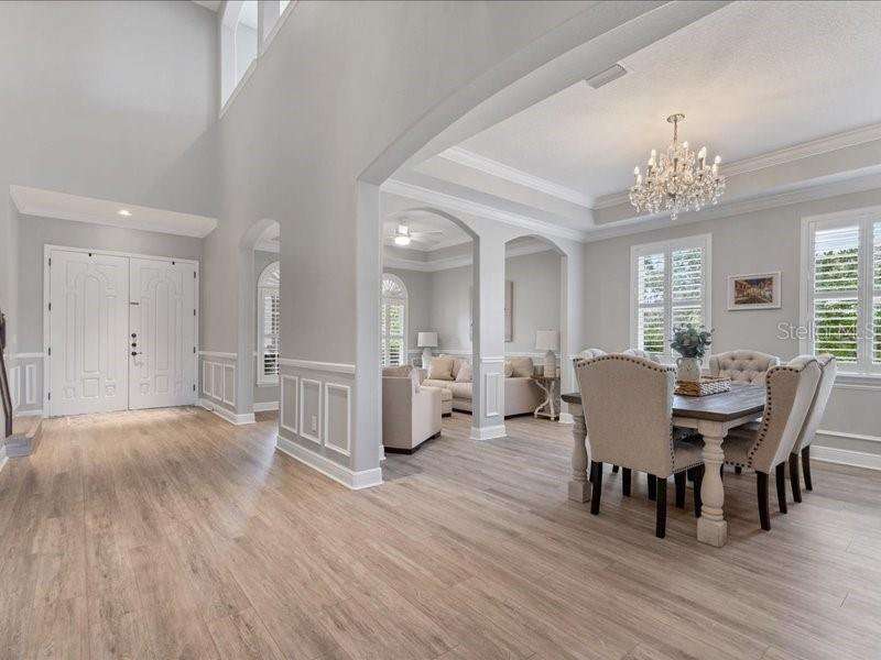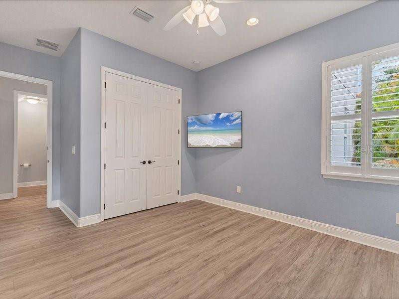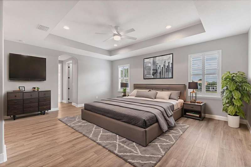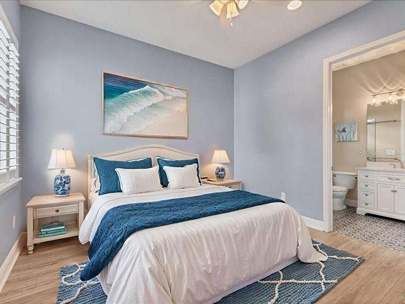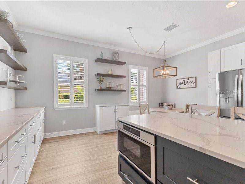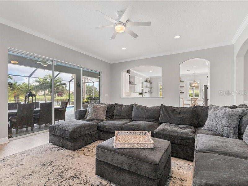 Under contract-accepting backup offers. One or more photo(s) has been virtually staged. Exquisite 4,310 sq. ft. lakefront residence, built in 2014 and completely renovated in 2022, offering luxury and comfort within the gated community of Redhawk Reserve. Designed with five spacious bedrooms, four-and-a-half baths, a heated saltwater pool, three-car garage, and classic brick paver driveway. This home is positioned perfectly on a premium waterfront lot. Step inside to soaring 21-foot ceilings and an open, airy layout accented by neutral designer tones, crown molding, custom woodwork, and plantation shutters, blending timeless elegance with modern style. The first floor showcases a thoughtful layout with formal living and dining areas, a guest en-suite, powder bath, laundry room, and ample storage. The gourmet kitchen features Quartz countertops, stainless-steel appliances, a seven-foot island, induction cooktop, stainless-steel range hood, coffee/wine bar, and built-in banquette seating. Abundant cabinetry and workspace make this kitchen both stylish and functional. The family room flows seamlessly to a screened lanai with heated saltwater pool, lush tropical landscaping, and tranquil lake views. The covered outdoor area offers dual ceiling fans and generous space for dining, seating, and lounging. Upstairs, the primary suite serves as a private retreat with two custom walk-in closets and a spa-inspired bath featuring split vanities, a makeup area with marble countertops, freestanding soaking tub, and large walk-in shower. The loft area provides flexible space for a media or game room, while three additional bedrooms, including two en-suites with built-in closets, offer comfort and privacy. The extra-deep three-car garage includes epoxy flooring and overhead storage. A six-zone irrigation system, fed by recycled water, maintains the lush landscaping. Hurricane shutters, a reinforced front door, and a child-safe pool barrier add peace of mind. The home also includes a whole home Culligan water system with softener. Redhawk Reserve features a gated entrance, sidewalks, and scenic lakes. Award-winning Siesta Key Beach and UTC Town Center are only a short drive away. * Top rated school district* This home combines luxury and convenience in one of Sarasota's most desirable communities. Be sure to experience the 3D-Matterport virtual walkthrough. Don't miss this opportunity! Schedule your private showing today!