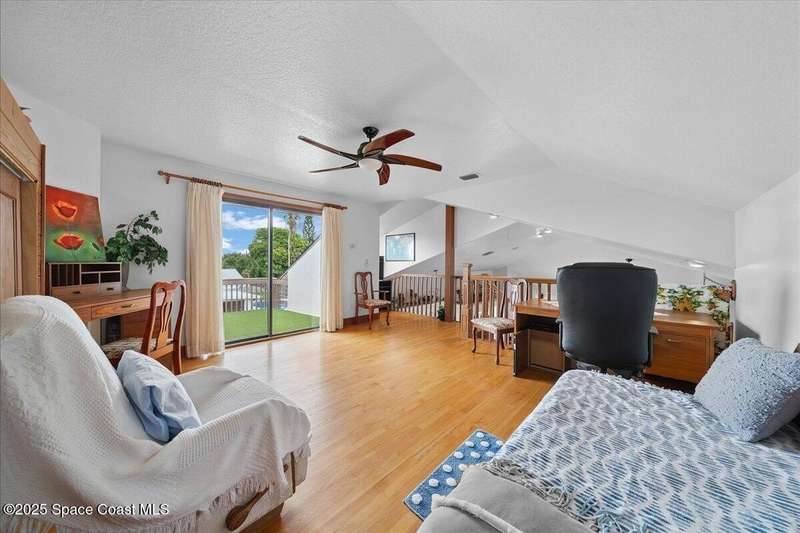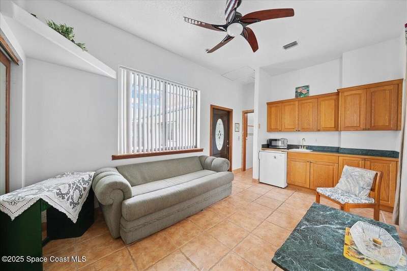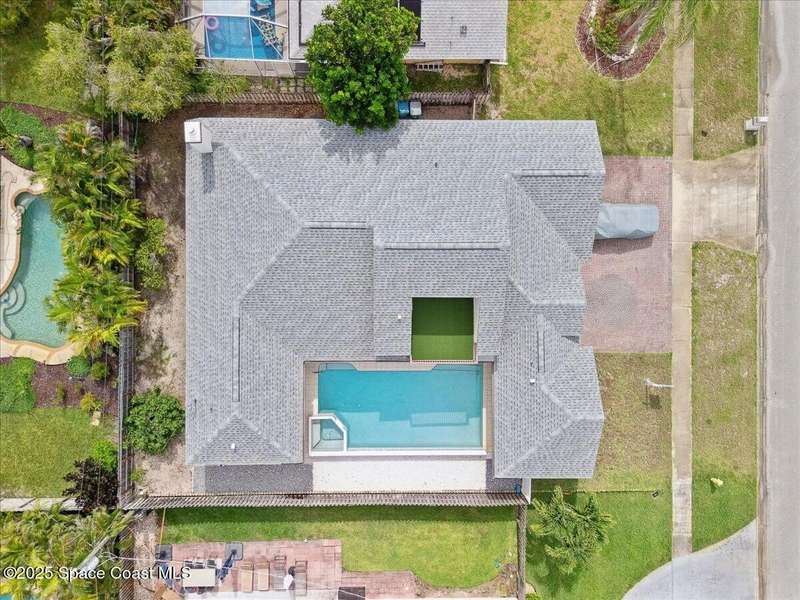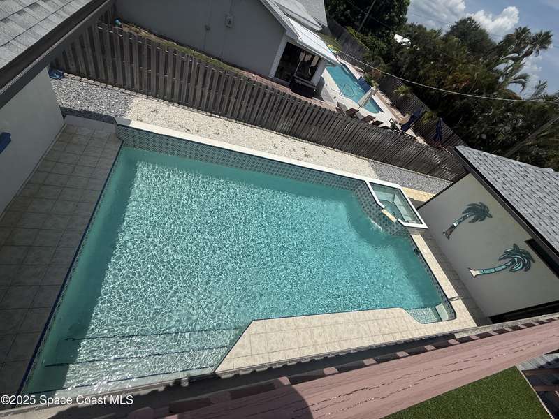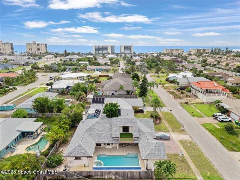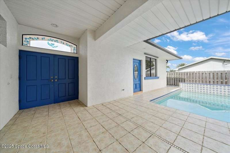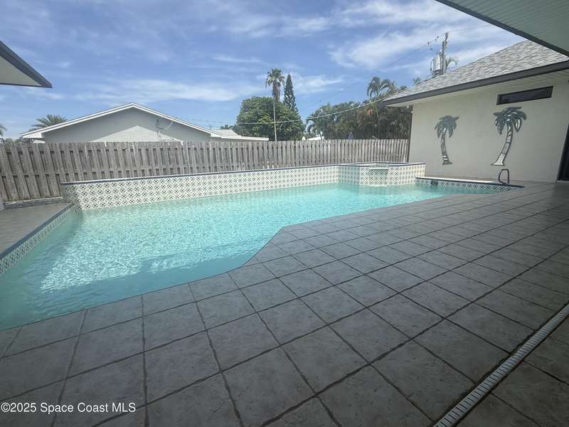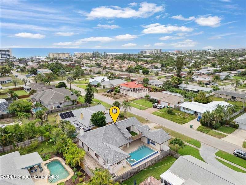 Just 1.5 blocks from the beach, this beautifully maintained 3-bed, 3-bath home offers the perfect blend of comfort & coastal charm. A 2nd-story loft with its own balcony-can easily be enclosed to create a 4th bedroom, ideal for growing families. The detached 1-bed/1-bath efficiency bungalow adds flexibility for multi-gen living or a private home office. Step into the serene courtyard featuring a large pool & spa, perfect for relaxing or entertaining. Inside, you'll find vaulted ceilings, open floor plan, & a primary suite with patio access, a walk-in closet, jetted tub, & separate shower. Built in 2000 w/concrete block construction, this home boasts recent upgrades: 2023 roof, 2024 A/C, & new water heater. Miami-Dade hurricane shutters offer added peace of mind. Located just blocks from top-rated schools, shopping, & dining, this one-owner home is a rare find in Satellite Beach. Whether you're seeking a family home or a second home by the sea, 240 Sheridan is ready to welcome you!