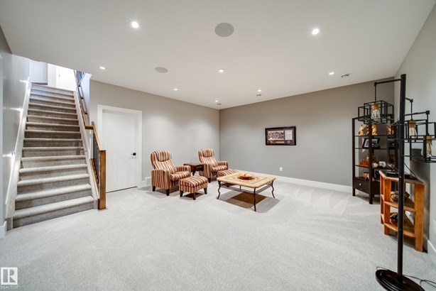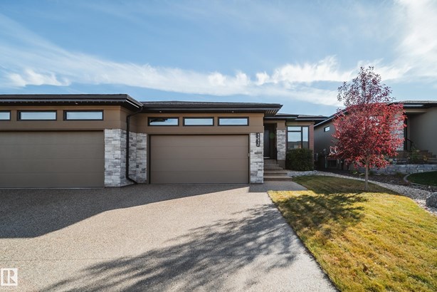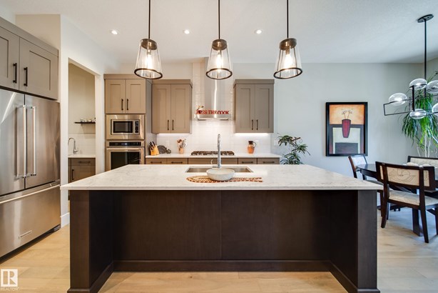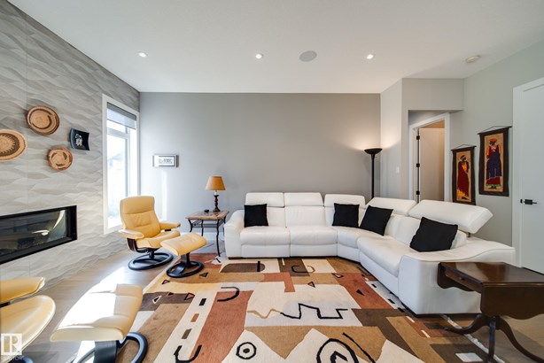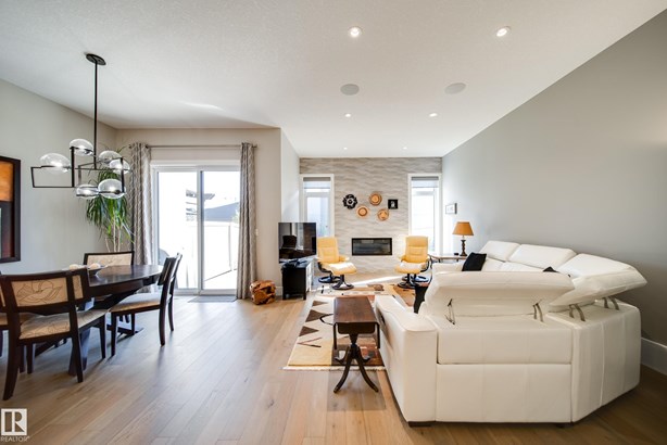 This former SHOW HOME blends high-end design with effortless living in the heart of Keswick. Tucked into a quiet cul-de-sac, this executive half-duplex bungalow offers 2900 sq ft of impeccably finished living space, fully air-conditioned and move-in ready. Soaring 10’ ceilings lead to a dream kitchen with quartz counters, built-in appliances, a prep sink and a butler’s pantry made for entertainers. The open living and dining area is warm and inviting, anchored by a sleek linear fireplace and a private study. The primary suite is a retreat — spa-style ensuite, walk-through closet and direct access to laundry. Downstairs, 9’ ceilings frame a bright rec room with wet bar, 2 bedrooms and a 4 pc bath. Details that matter: maple railing with iron spindles, black exterior windows, custom mudroom built-ins, concrete party wall with Roxul insulation, and a heated dbl garage with floor drain, H/C water, epoxy and lift-ready height. No condo fees, well below new build cost, and barely lived in — pride of ownership!